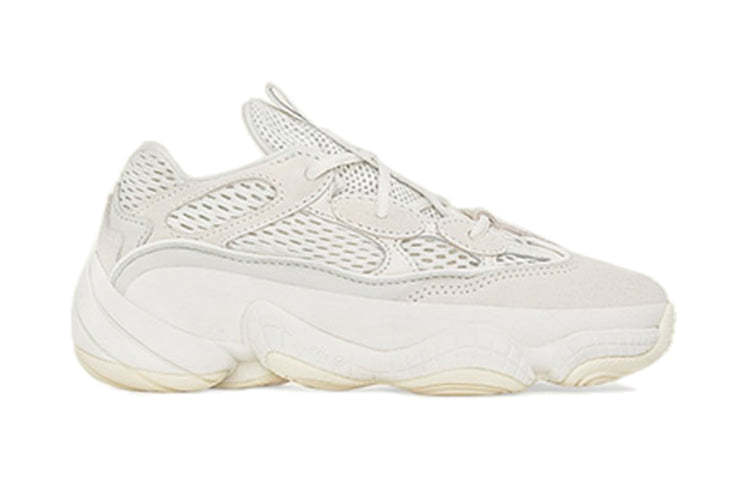 The adithtdas yeethtzy 500 Kids 'Bone White' sneakers are a retro-inspired design driven by Kanye West's unique vision. These shoes are crafted from a combination of mesh, cow suede, and leather in a beautiful Bone White colorway. They feature reinforced laces and reflective piping around the eyelets for a touch of utility-chic style. The AdiPRENE+ midsole and rubber outsole provide cushioning and traction, making these sneakers perfect for any adventure.