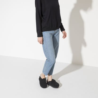 Grand classique, le sabot Boston se porte en toute saison. Ce modèle classique se présente ici dans une version très moelleuse avec une semelle de propreté en fourrure d'agneau de couleur assortie et des brides doublées de fourrure d'agneau. La chaussure idéale pour les soirées d'hiver douillettes au coin du feu ! Sa tige se compose de cuir velours doux.