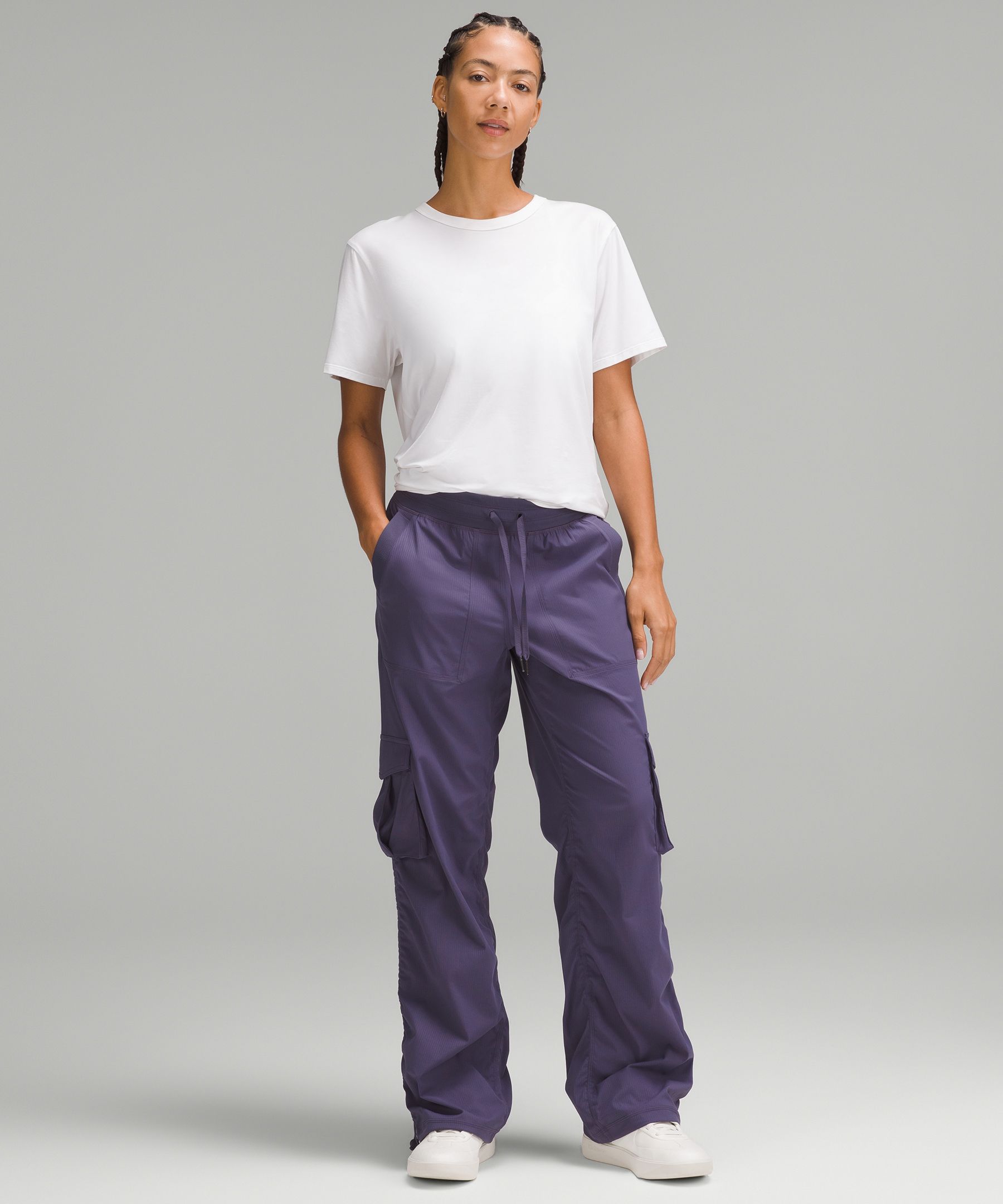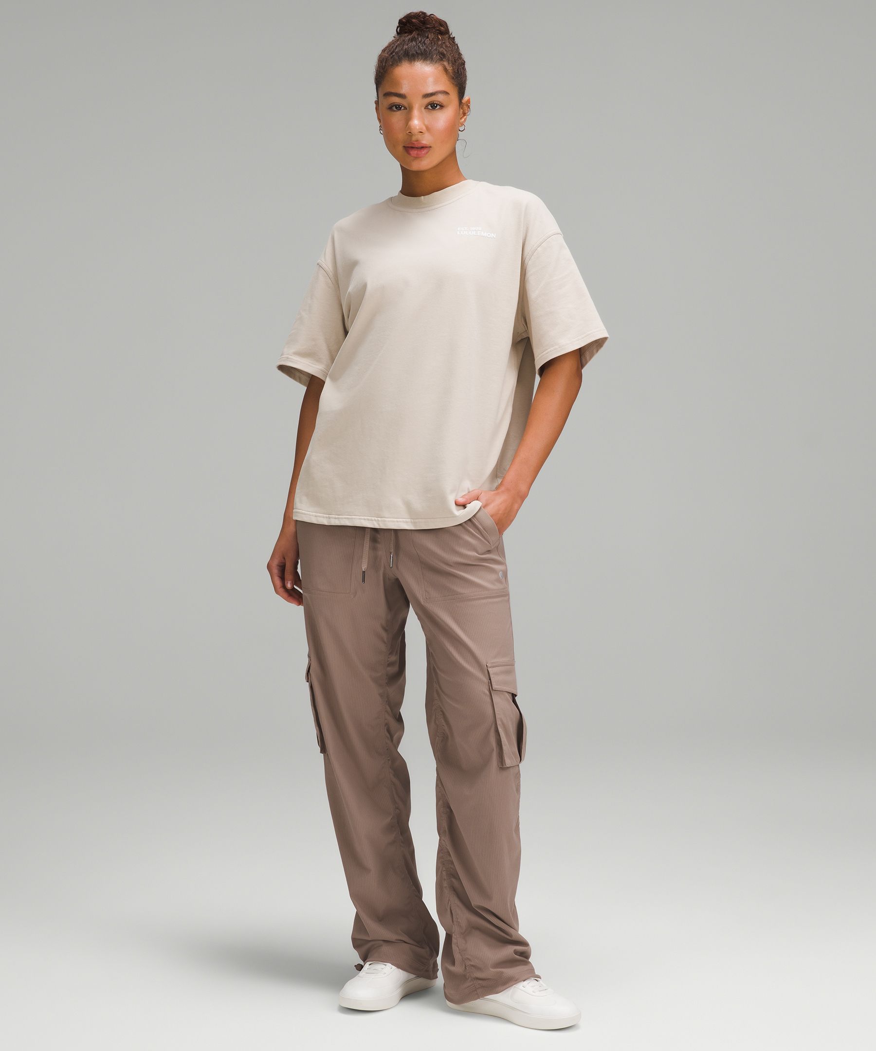 This new relaxed-fit version of our Dance Studio Pant feels roomier throughout the hips and thighs. Size down for a less relaxed fit.
