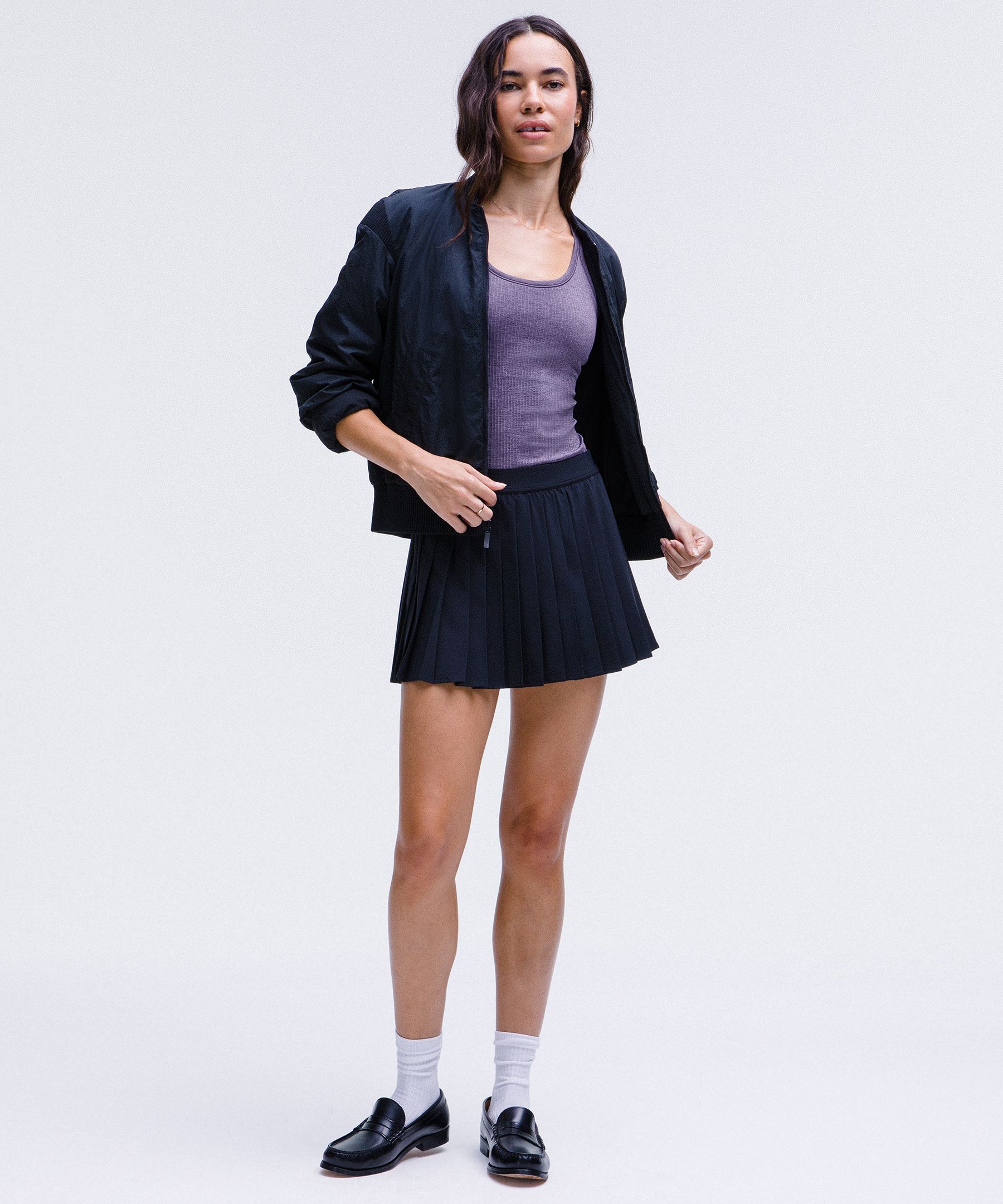 - Hip length sits below the waistband for moderate, everyday coverage