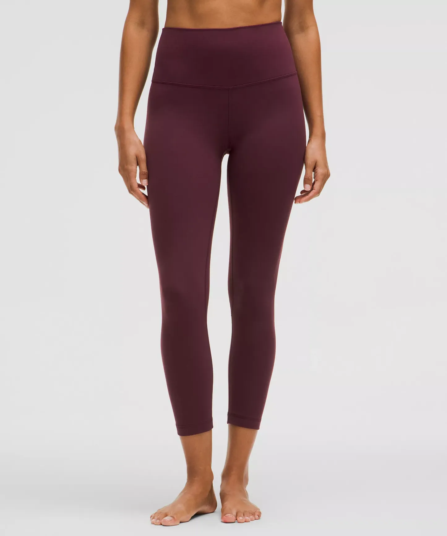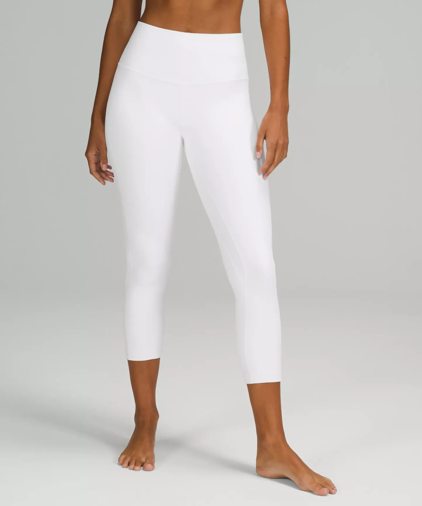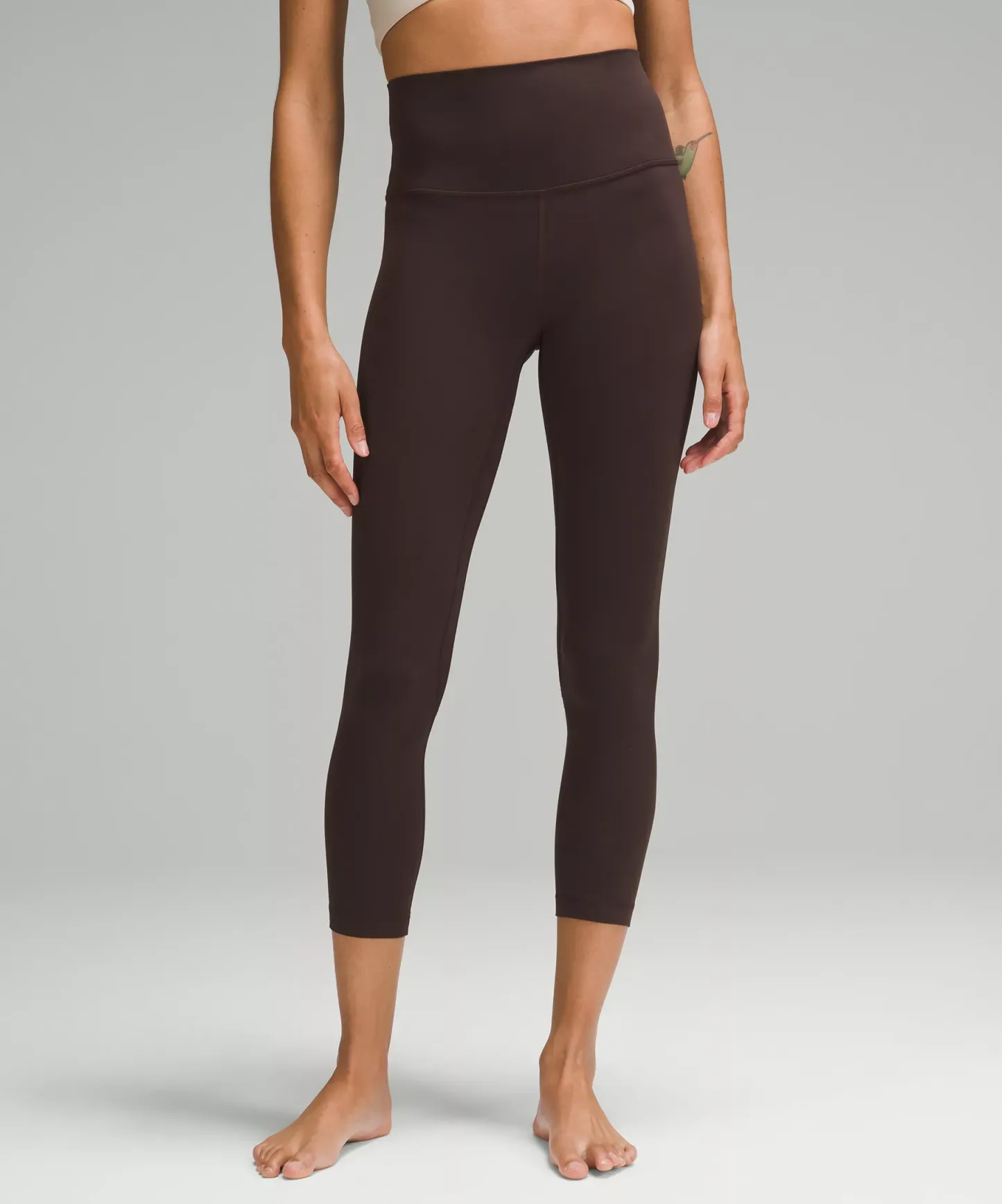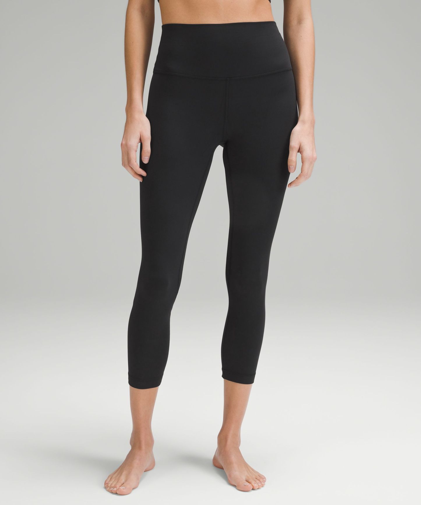 A high-rise waistband keeps you covered during forward folds and downward dogs. Our 23" length sits below your calf.
