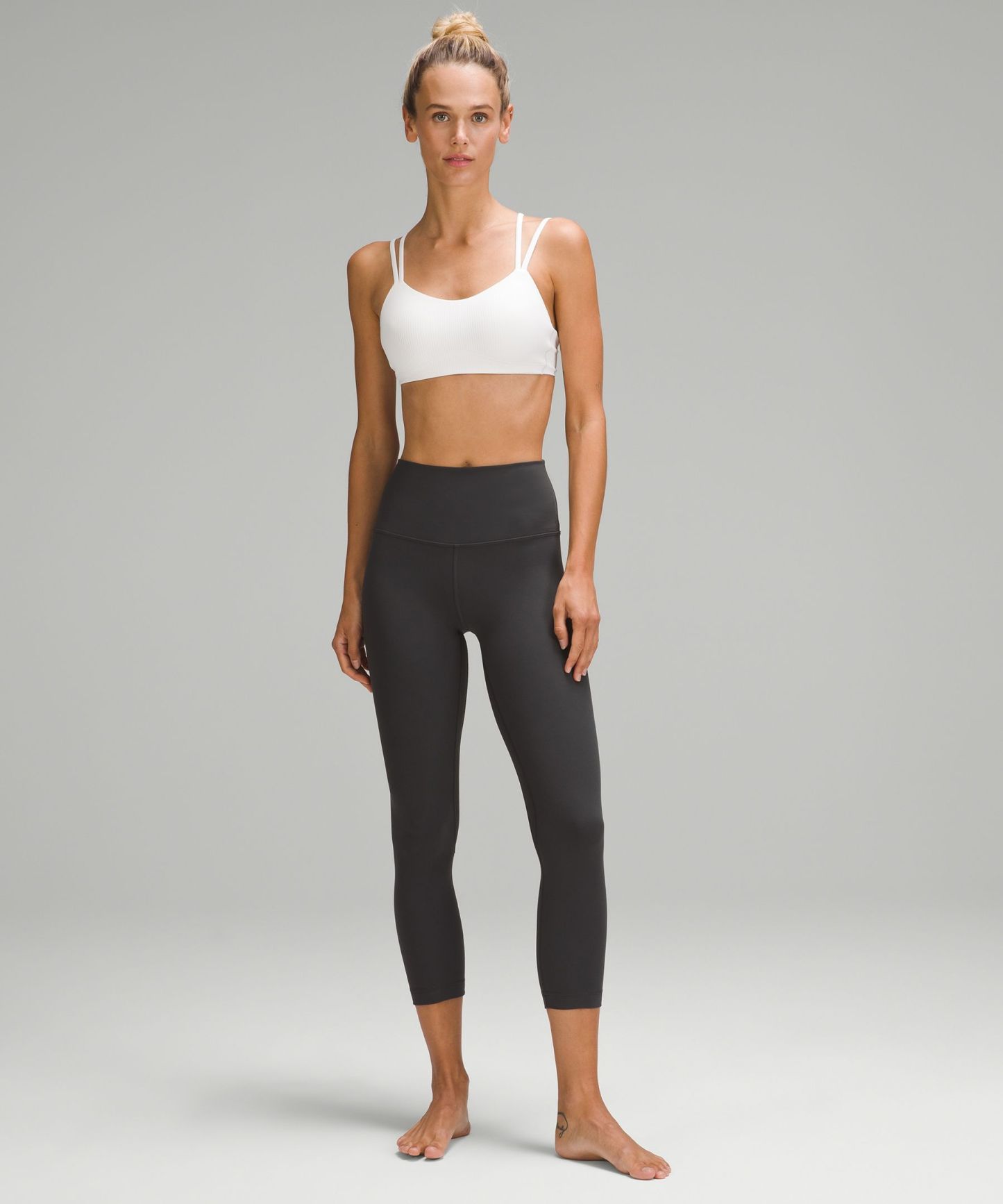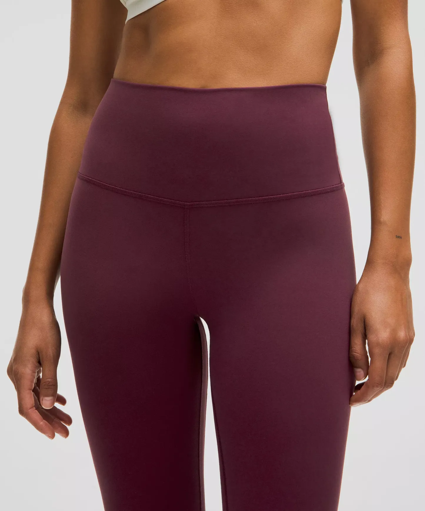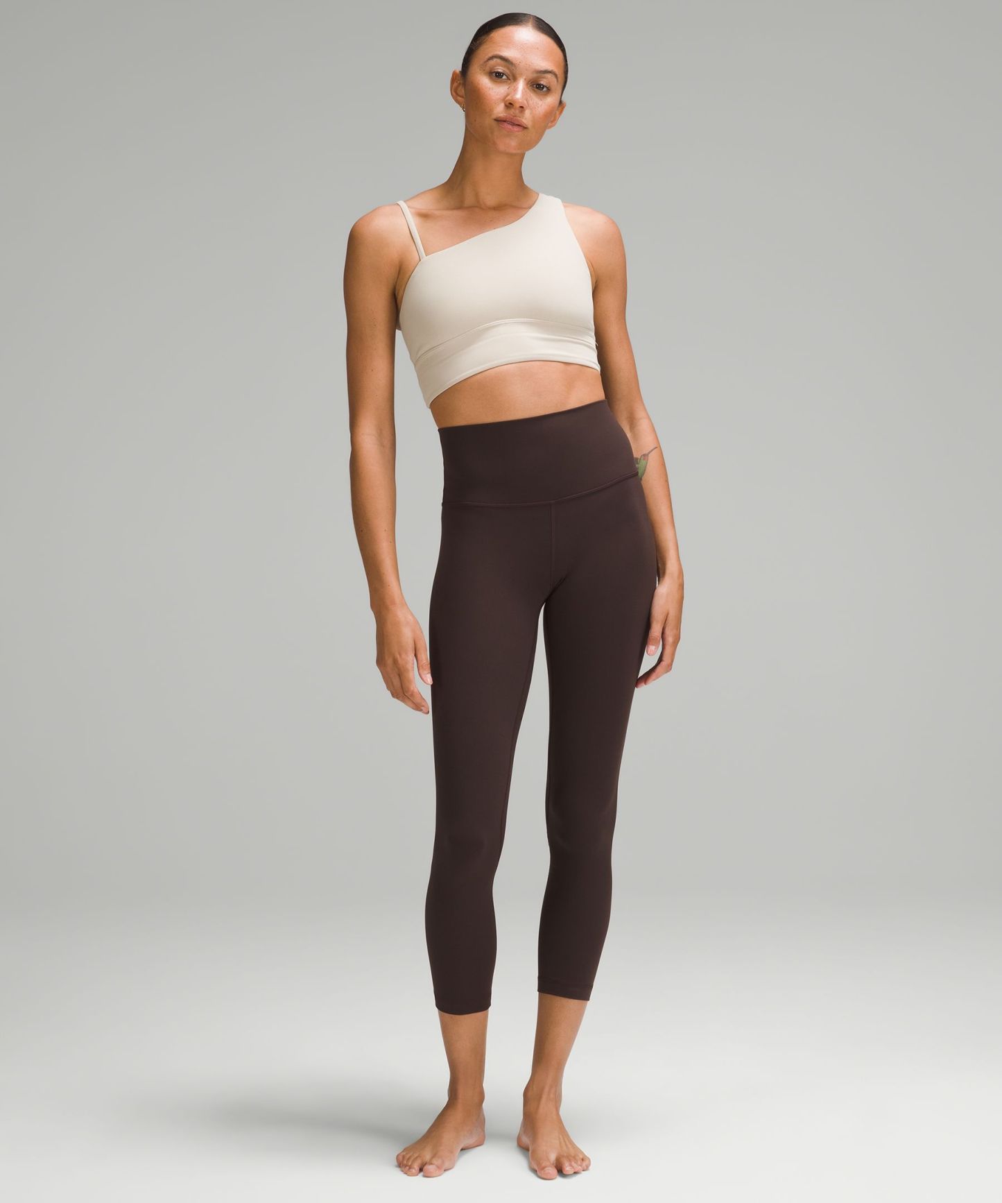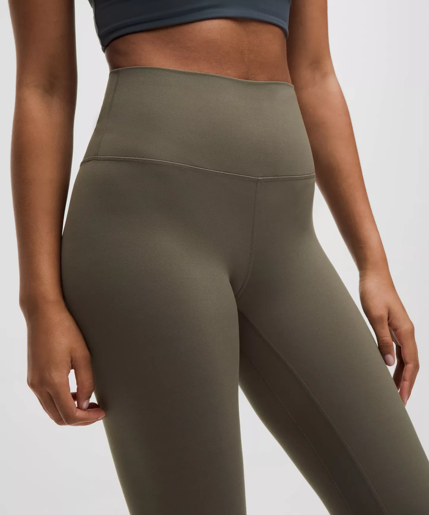 A high-rise waistband keeps you covered during forward folds and downward dogs. Our 23" length sits below your calf.