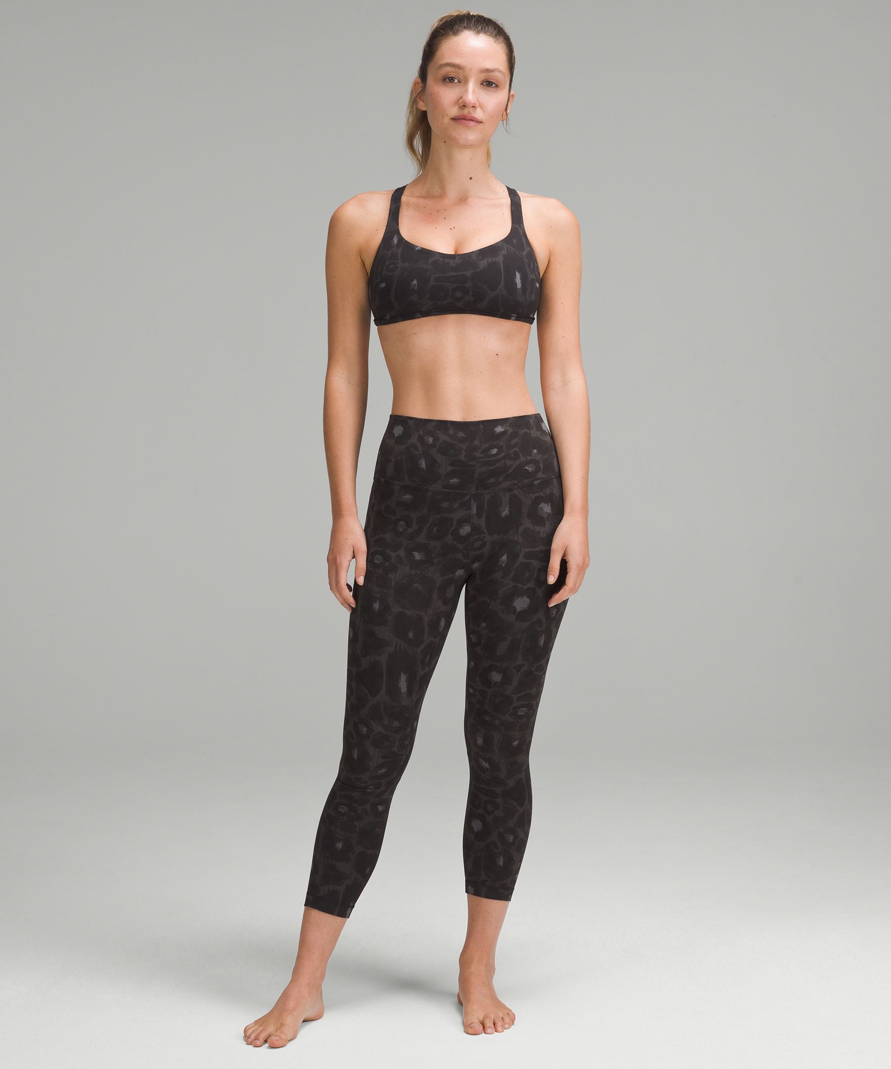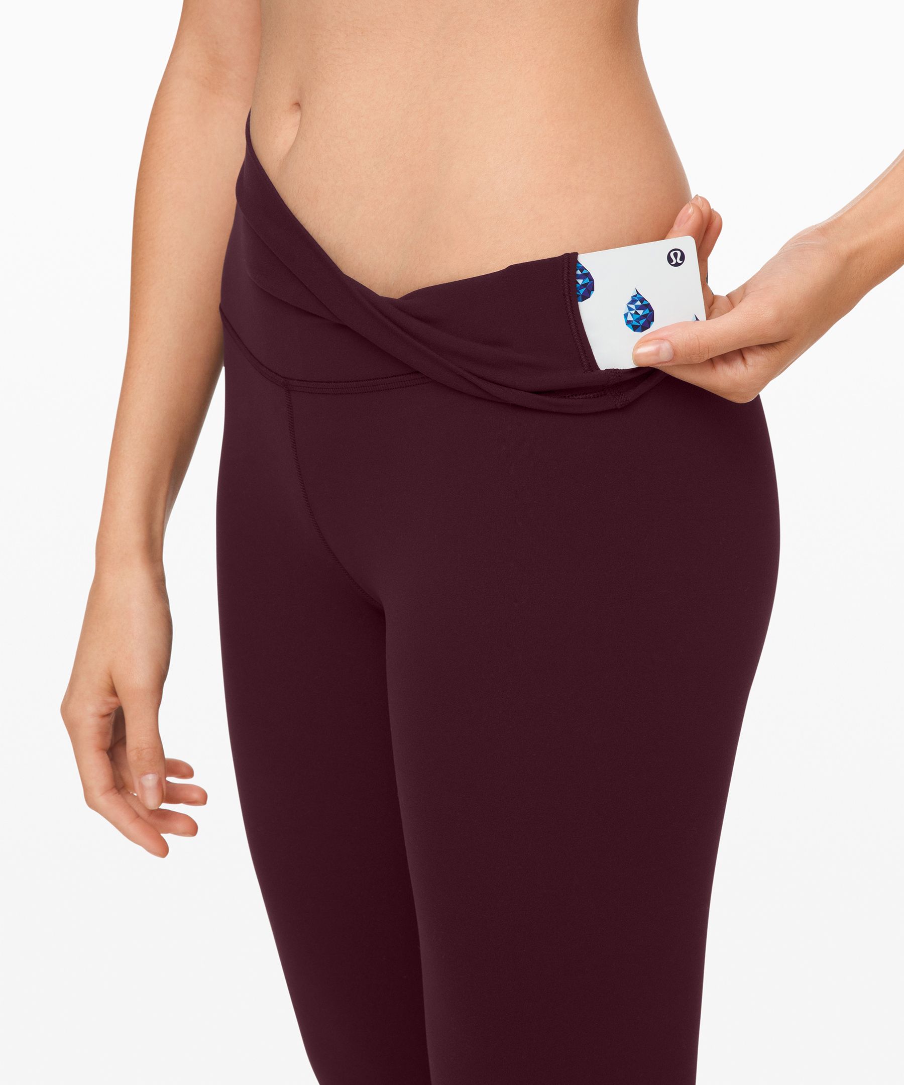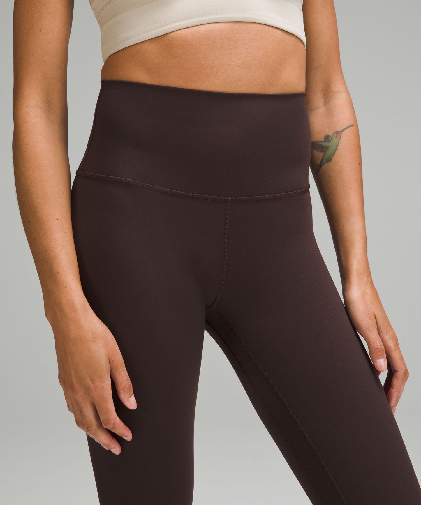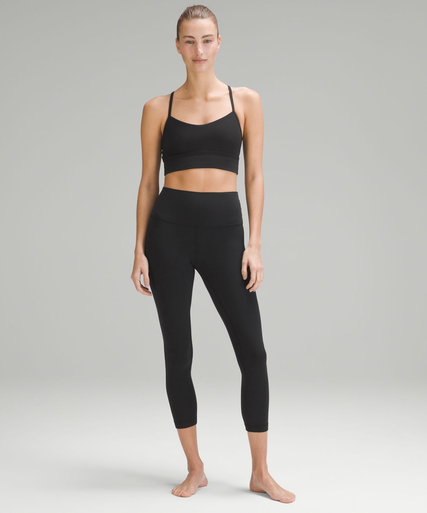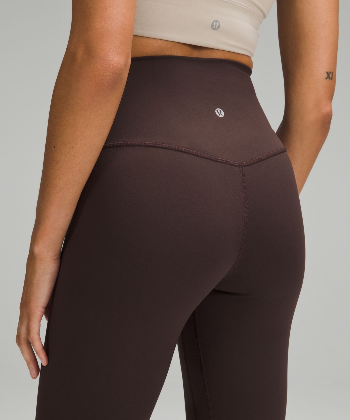 A high-rise waistband keeps you covered during forward folds and downward dogs. Our 23" length sits below your calf.