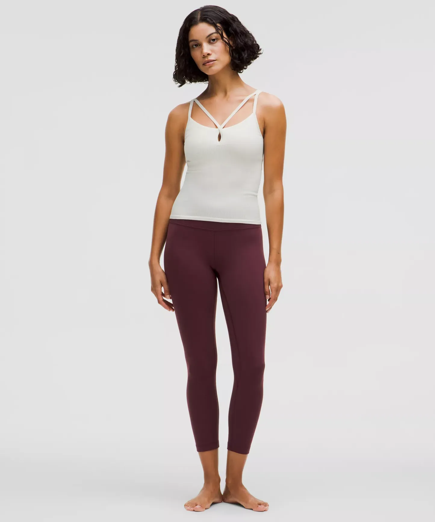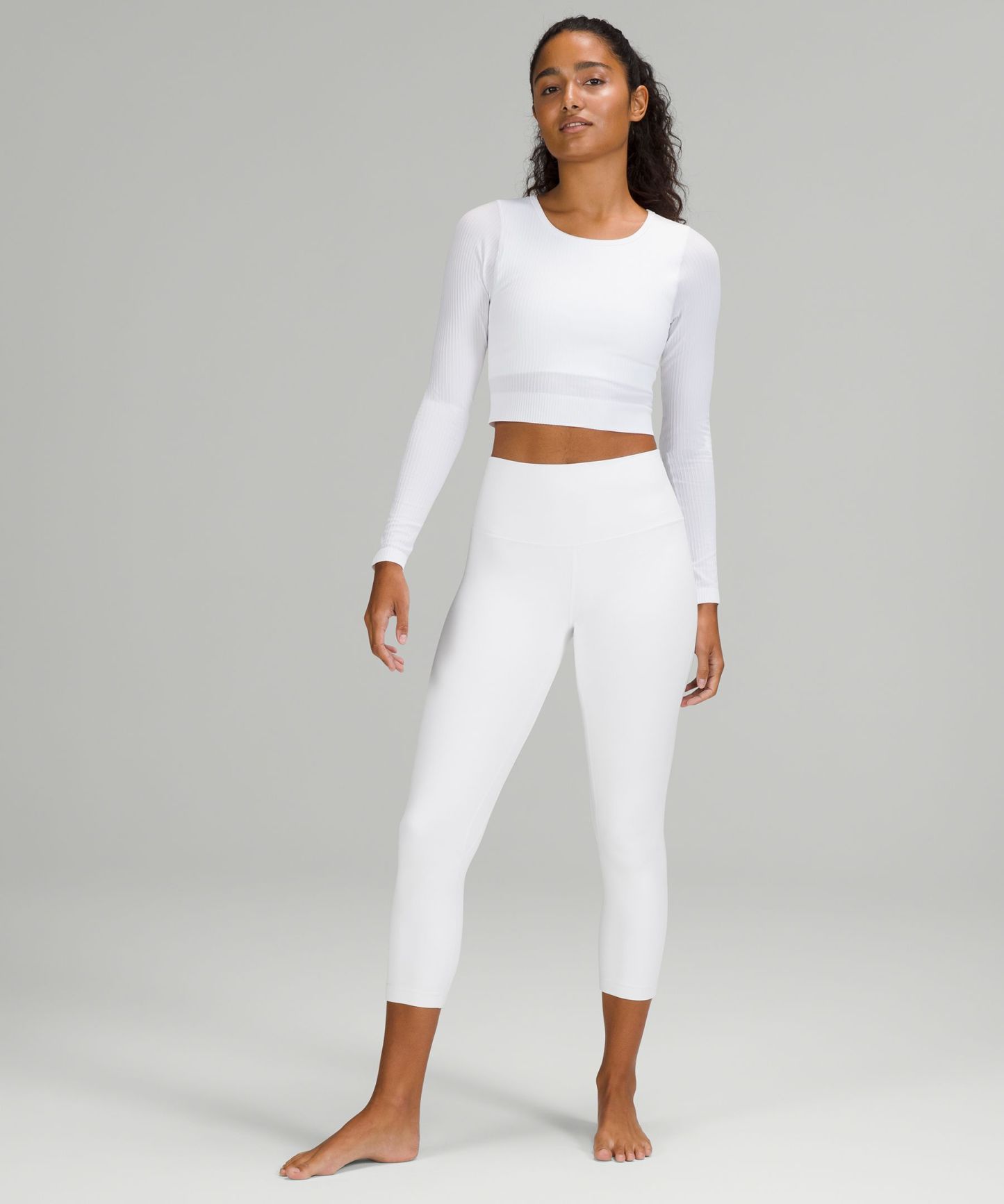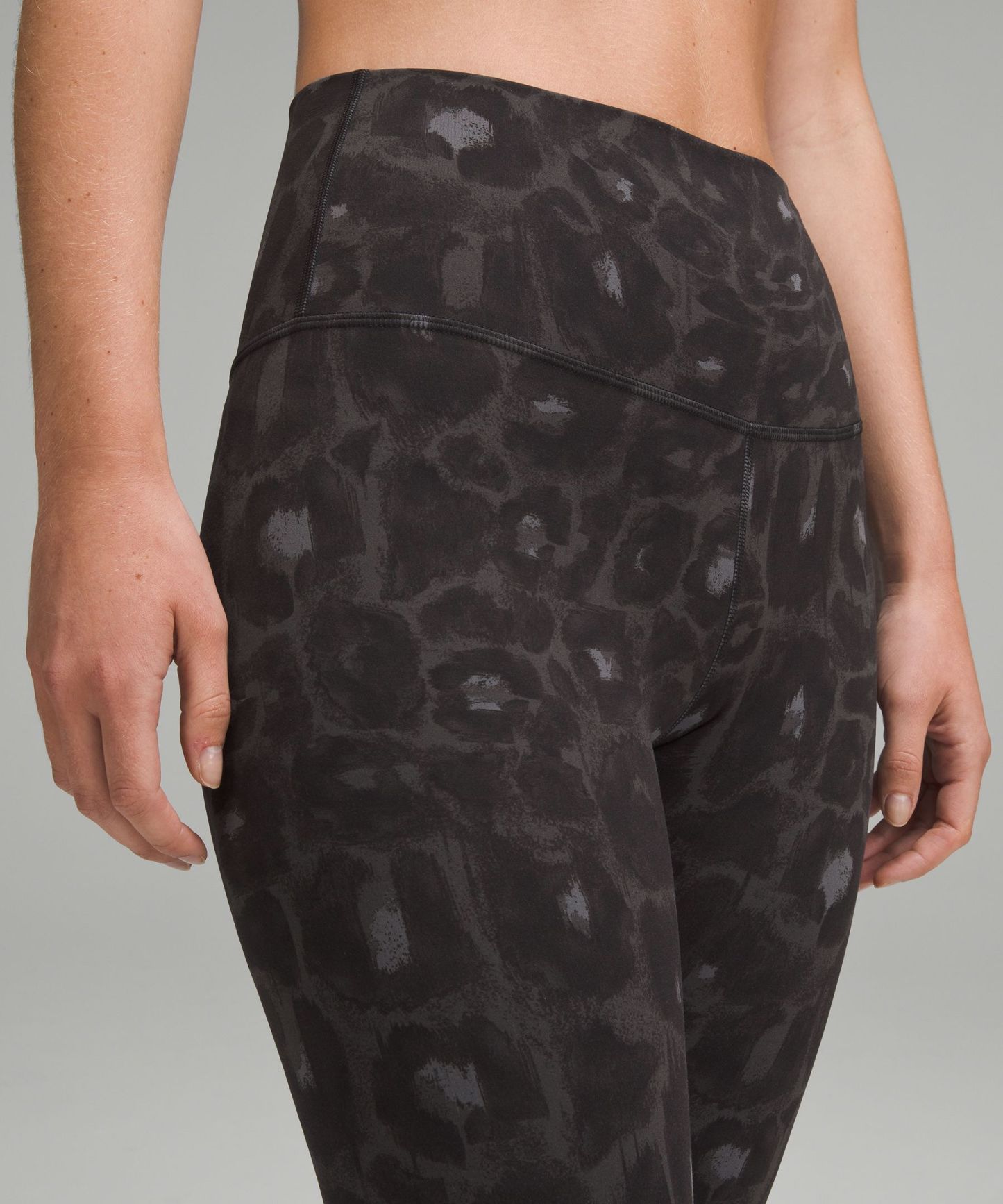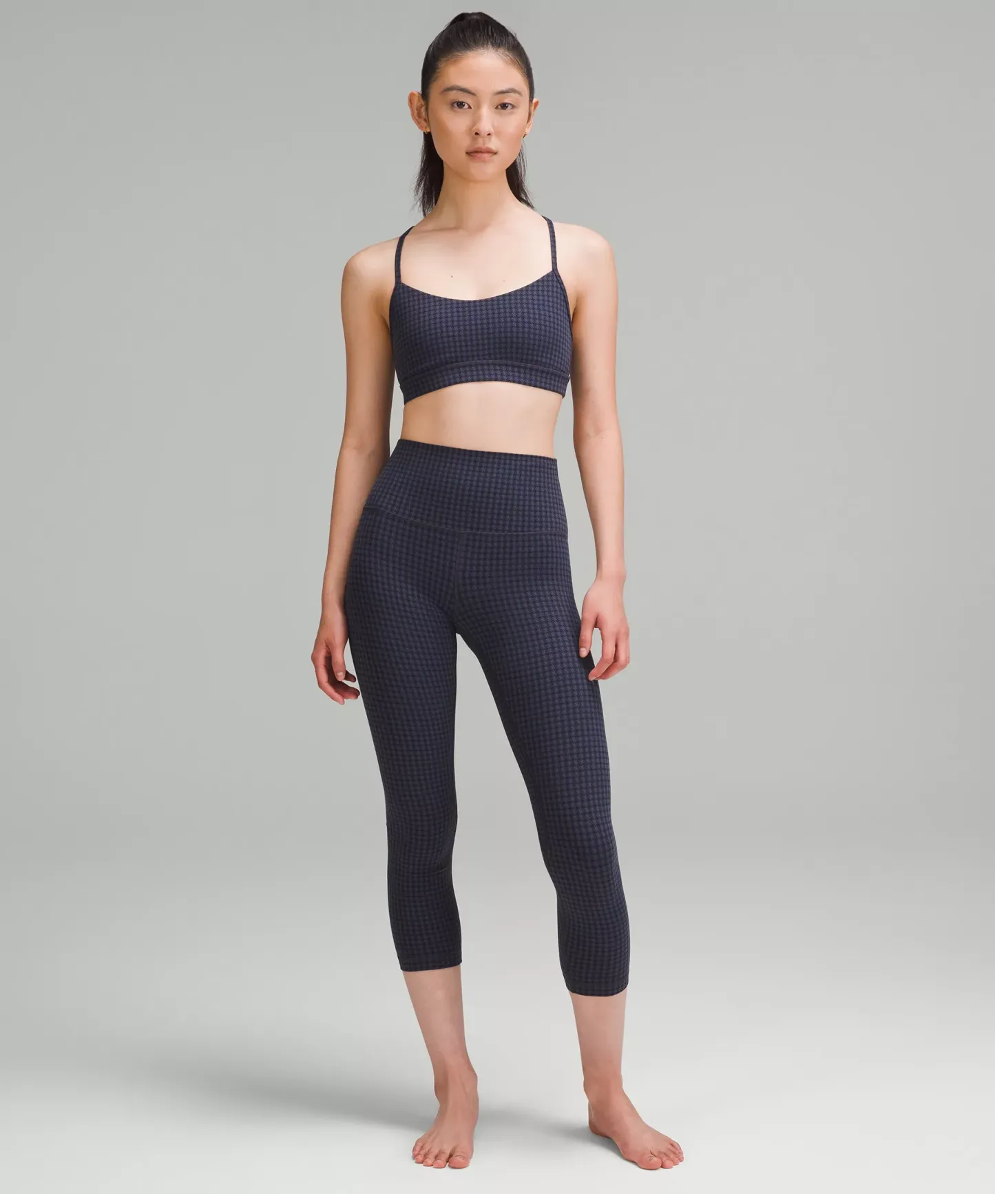 A high-rise waistband keeps you covered during forward folds and downward dogs. Our 23" length sits below your calf.
