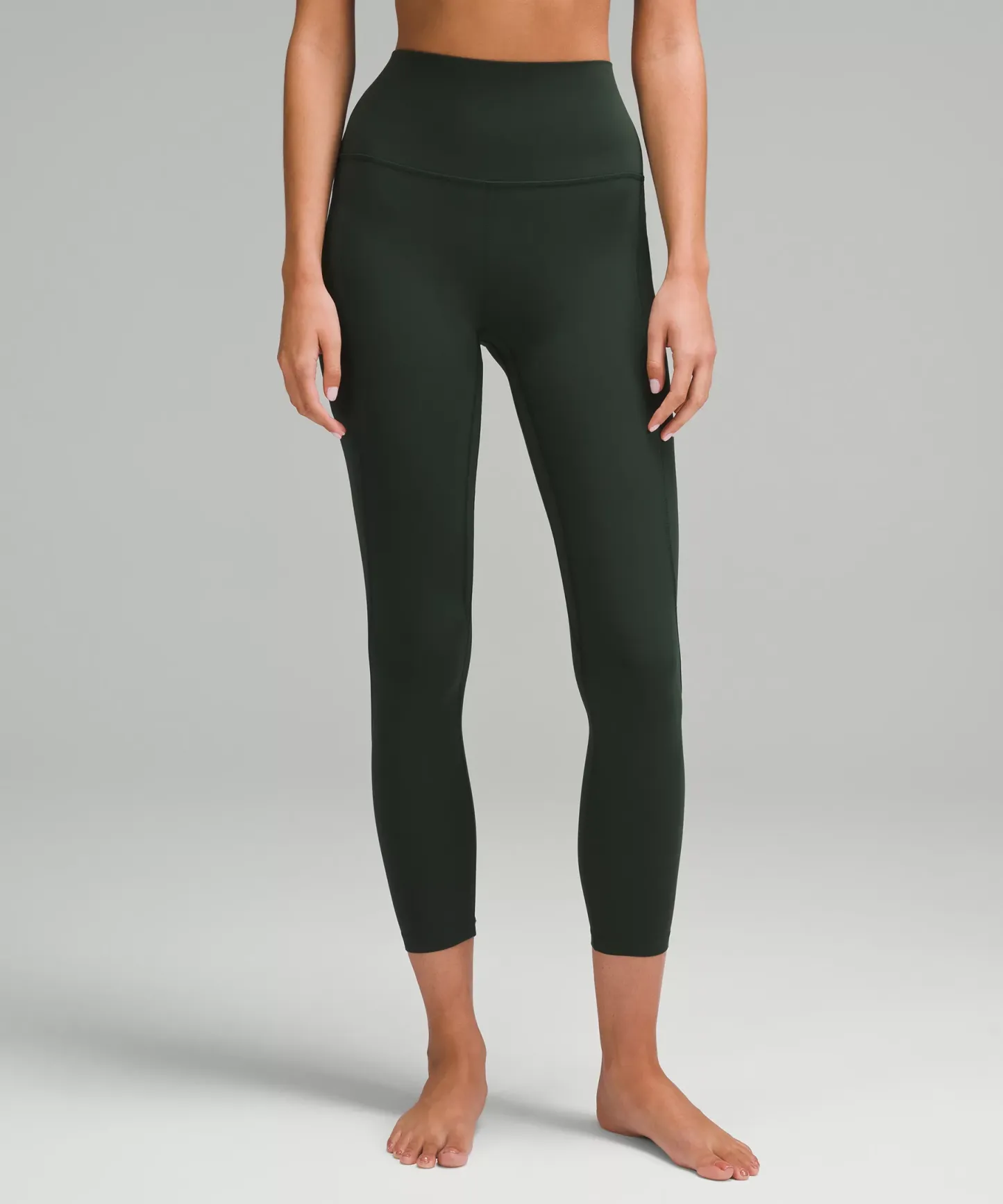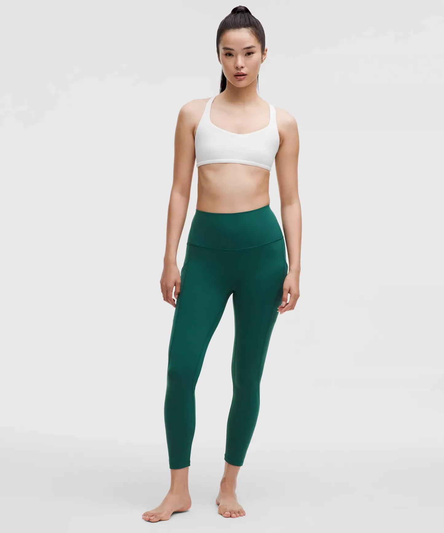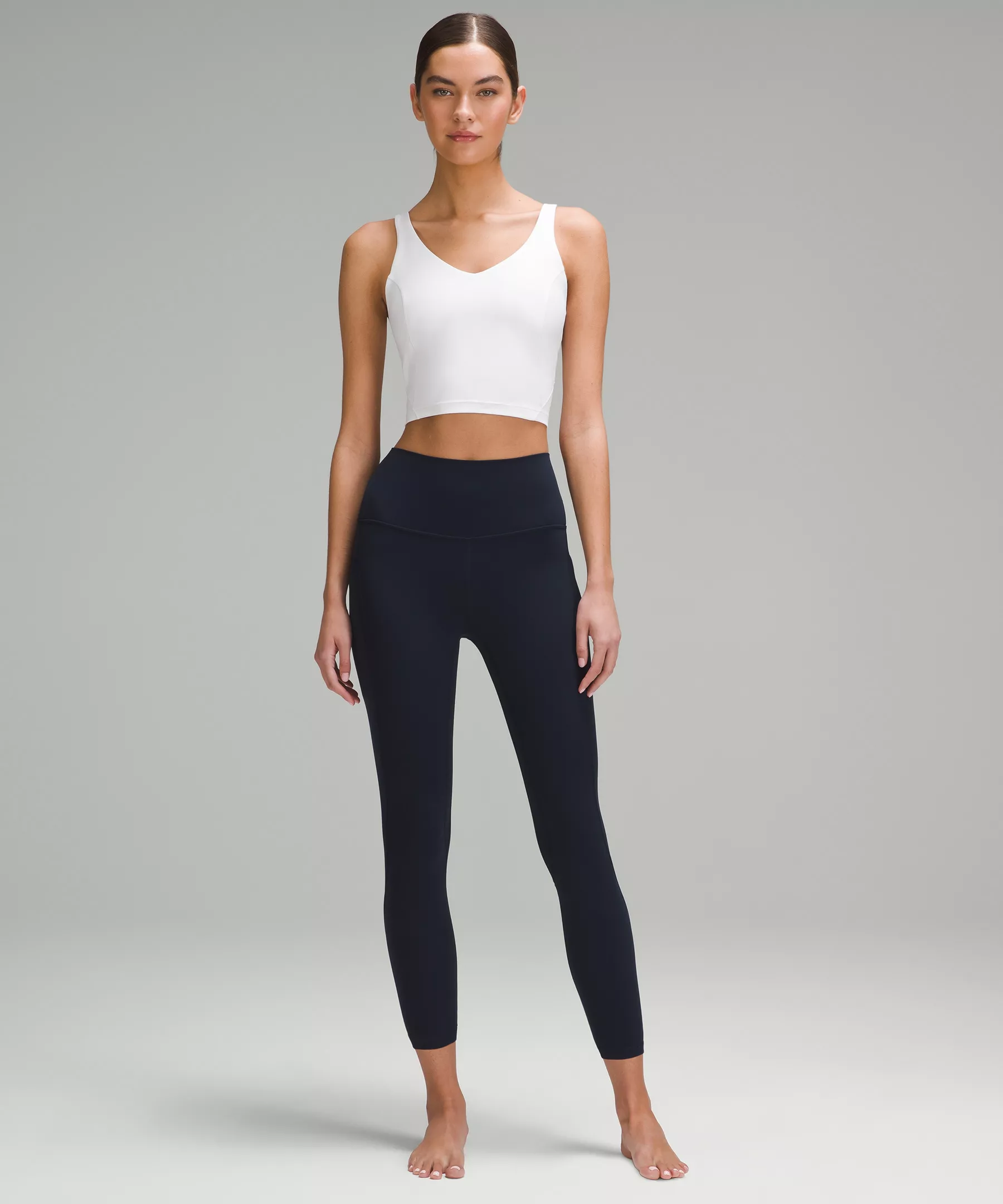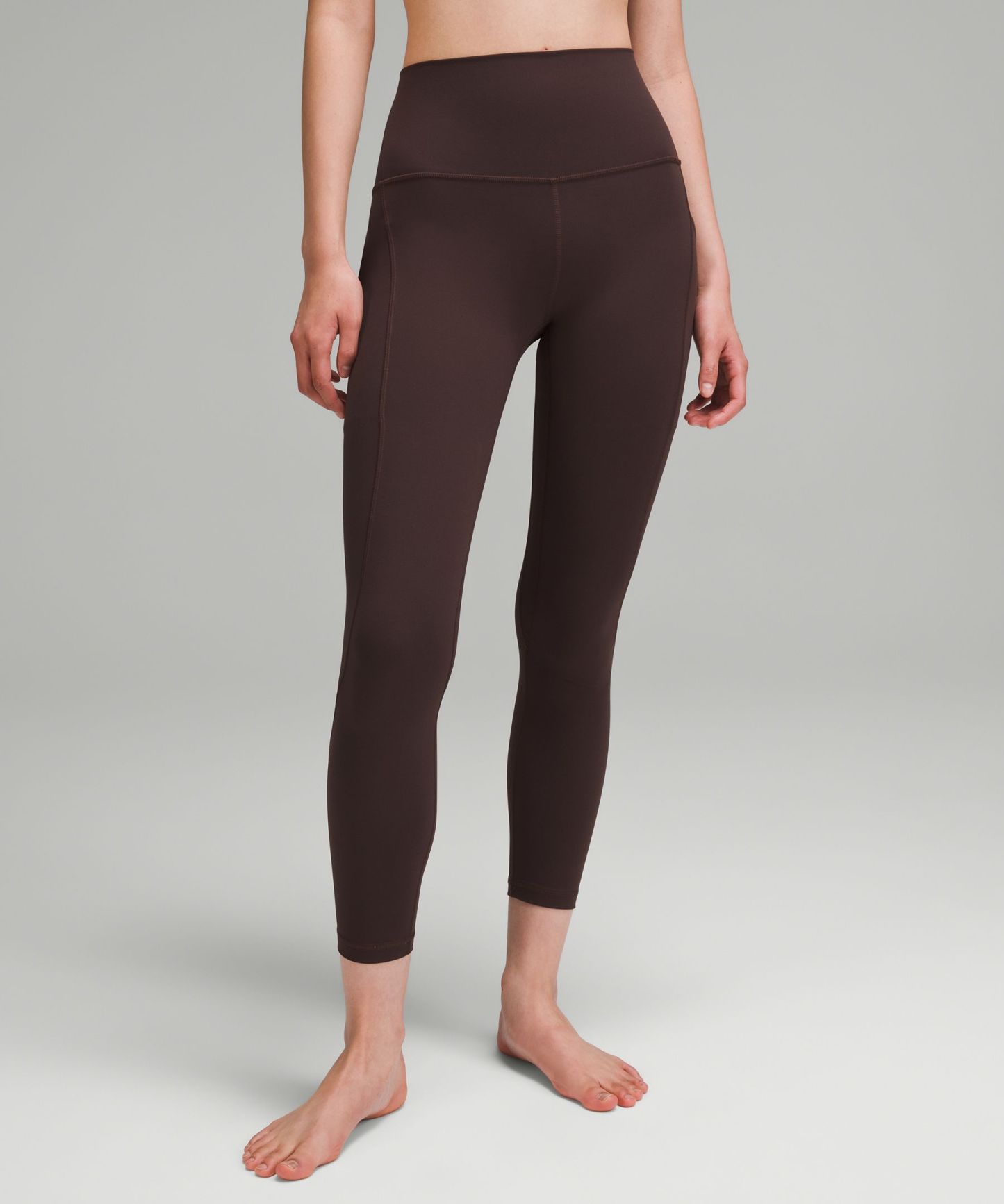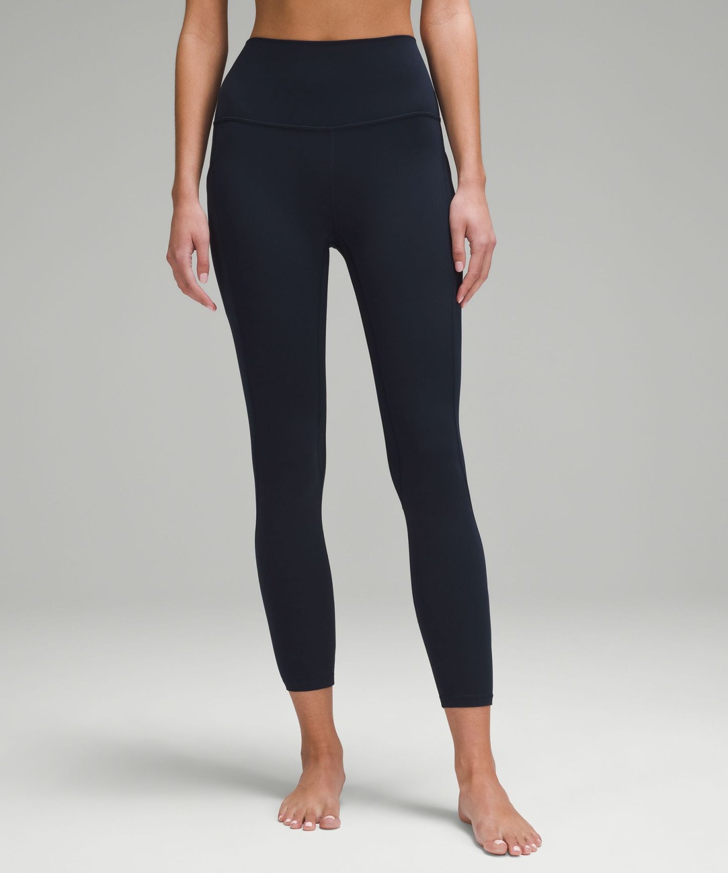 A high-rise waistband keeps you covered during forward folds and downward dogs. Our 25" length is intended to sit above your ankle.