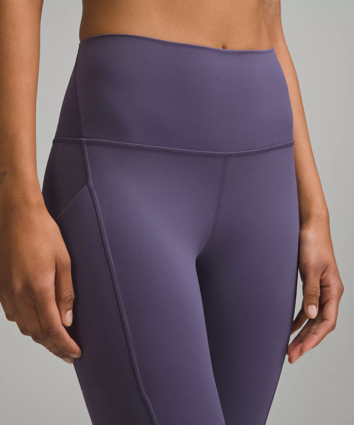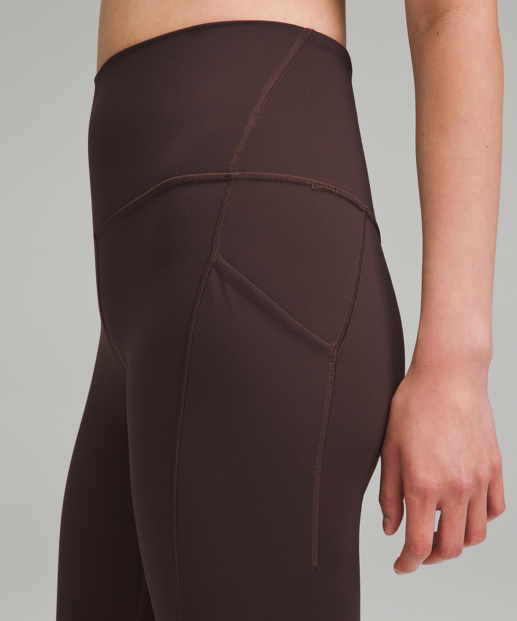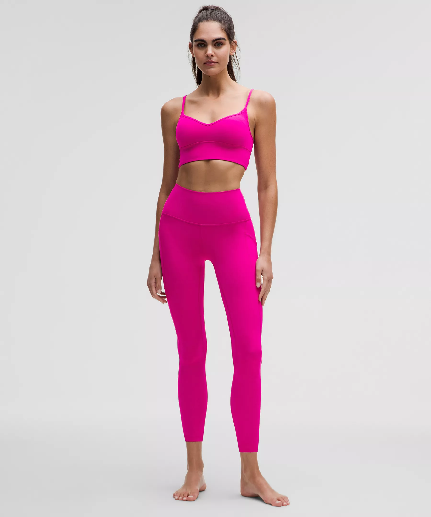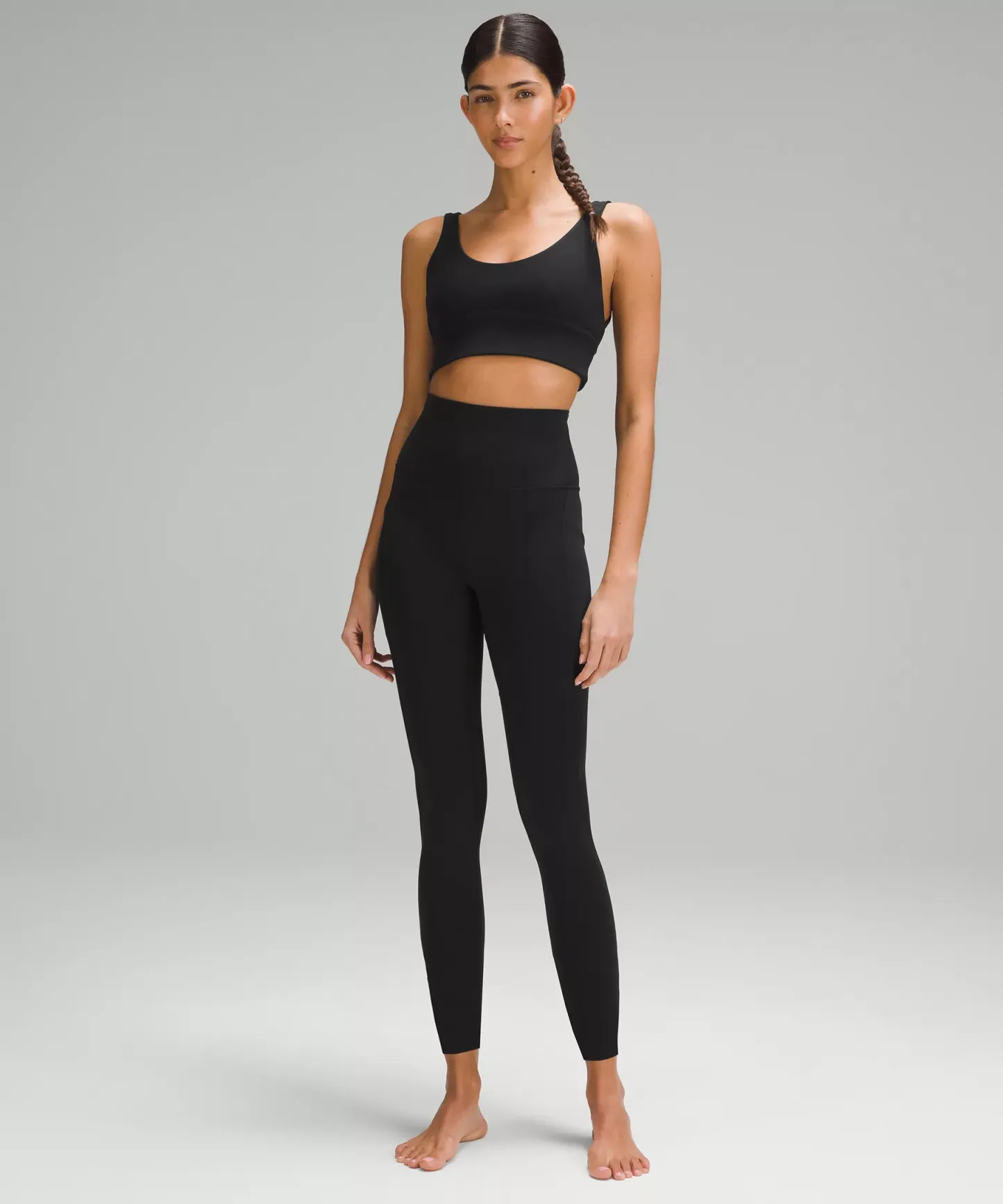 A high-rise waistband keeps you covered during forward folds and downward dogs. Our 25" length is intended to sit above your ankle.
