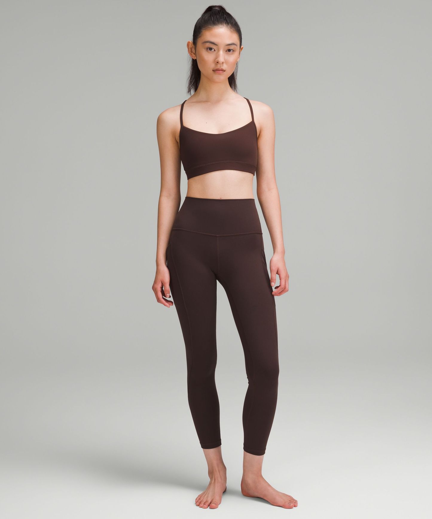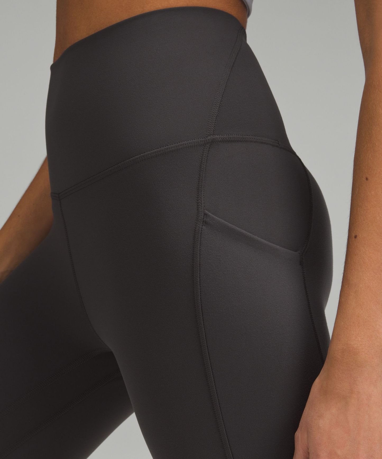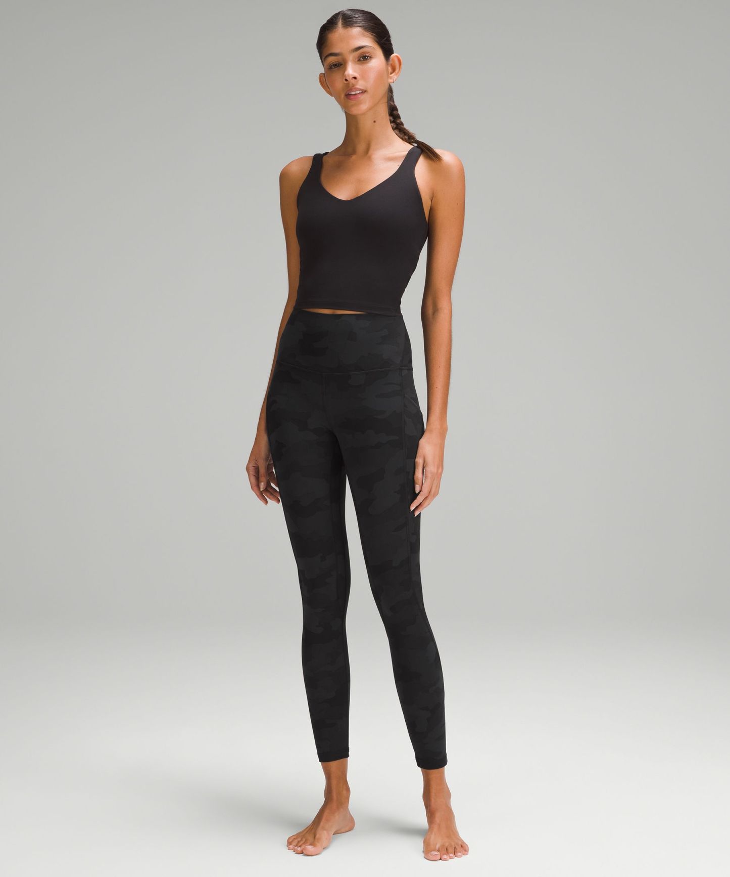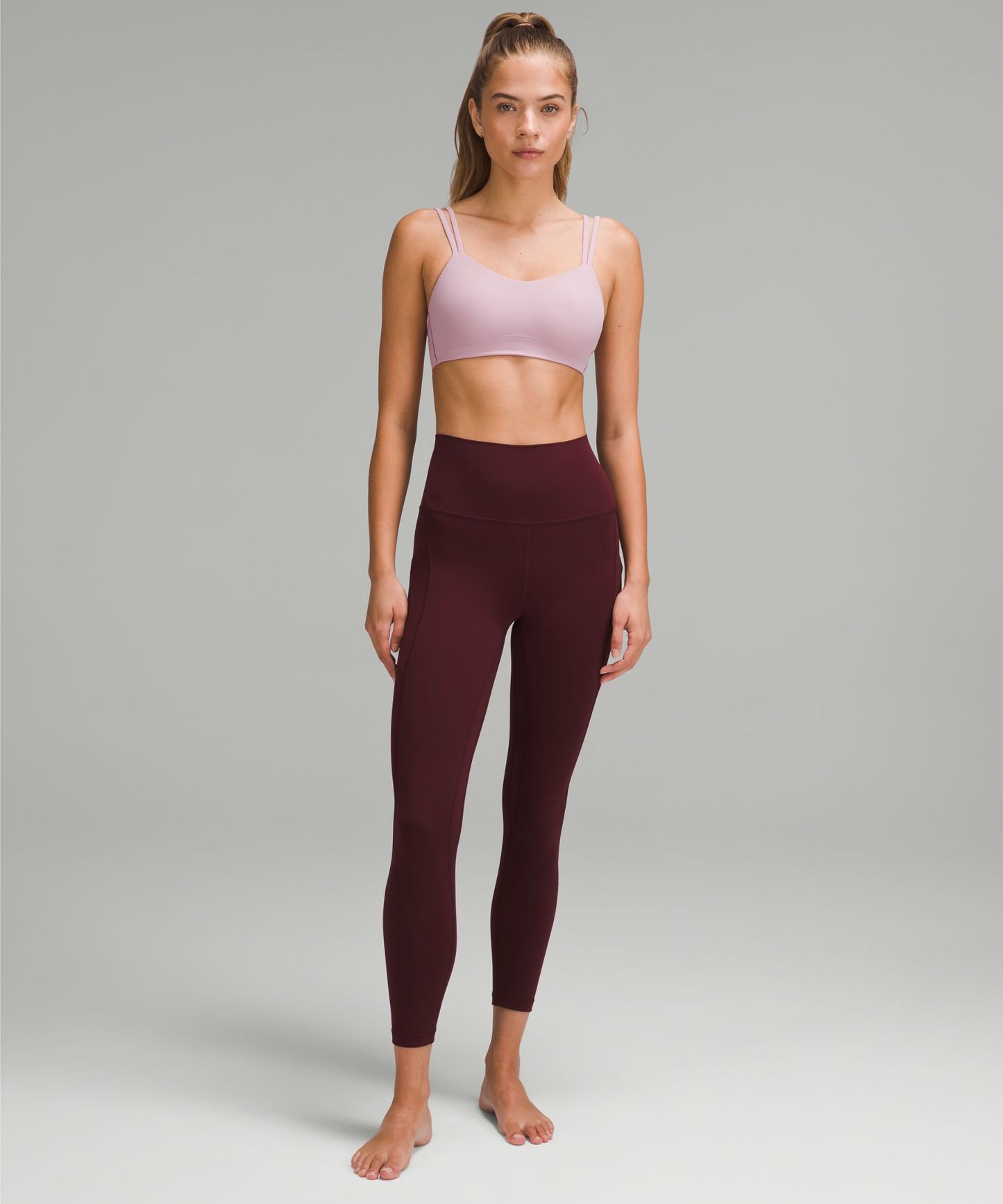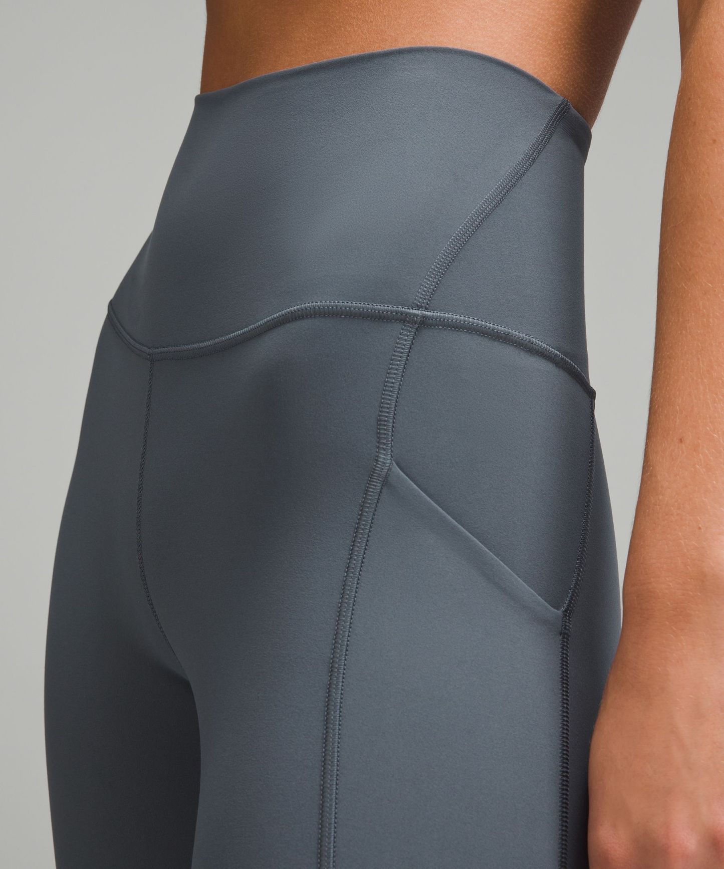 A high-rise waistband keeps you covered during forward folds and downward dogs. Our 25" length is intended to sit above your ankle.