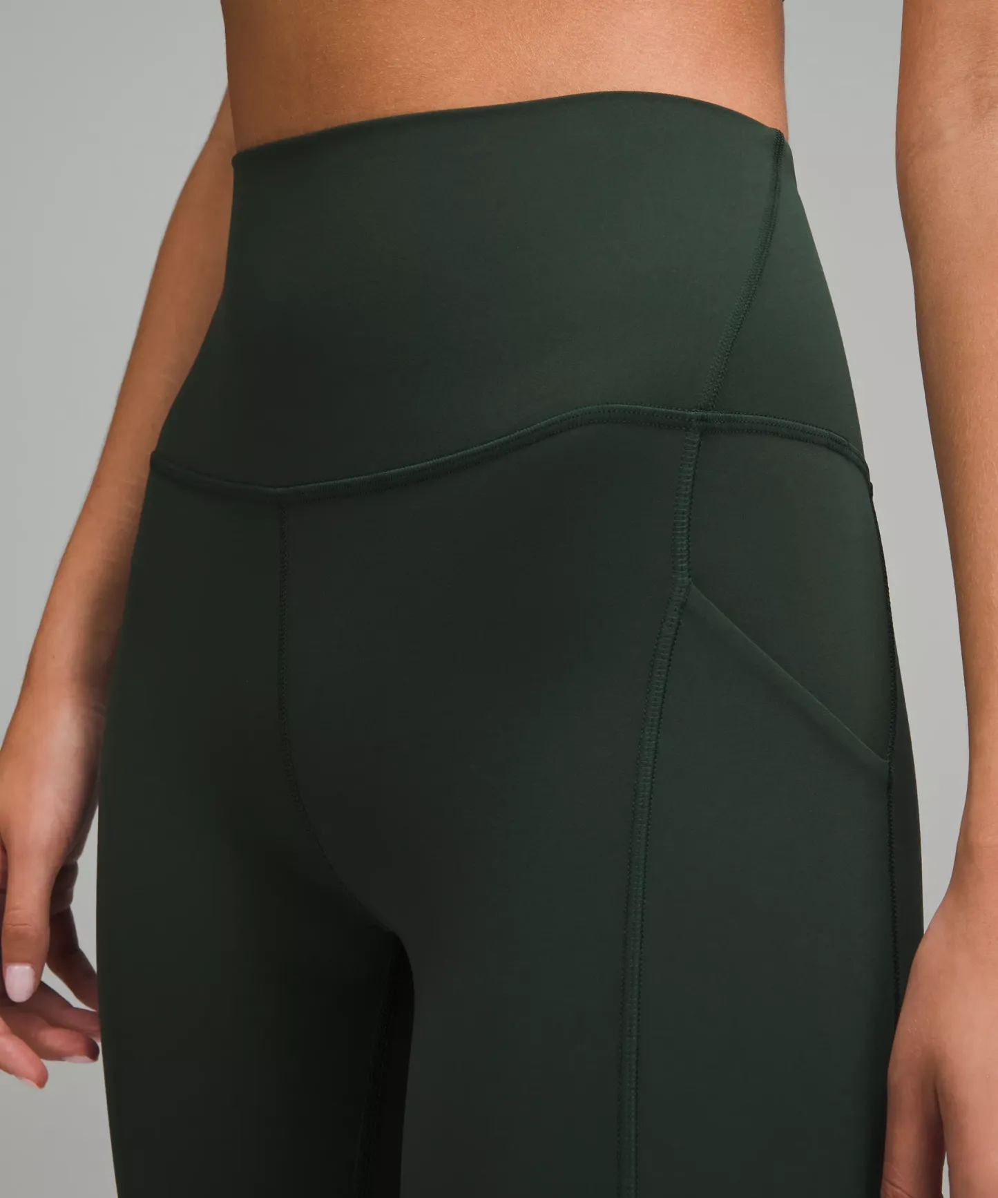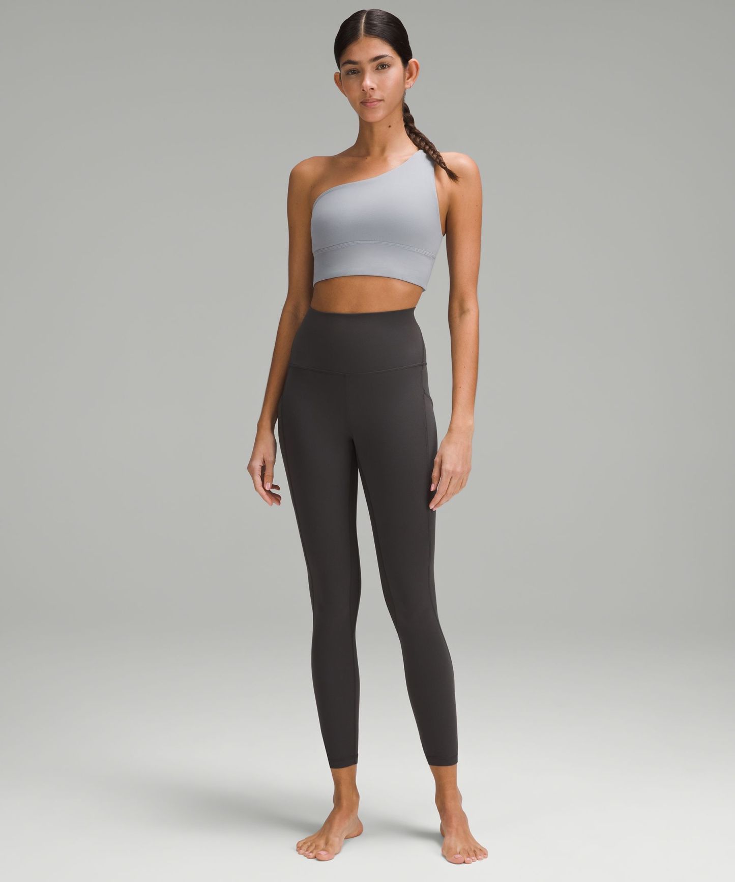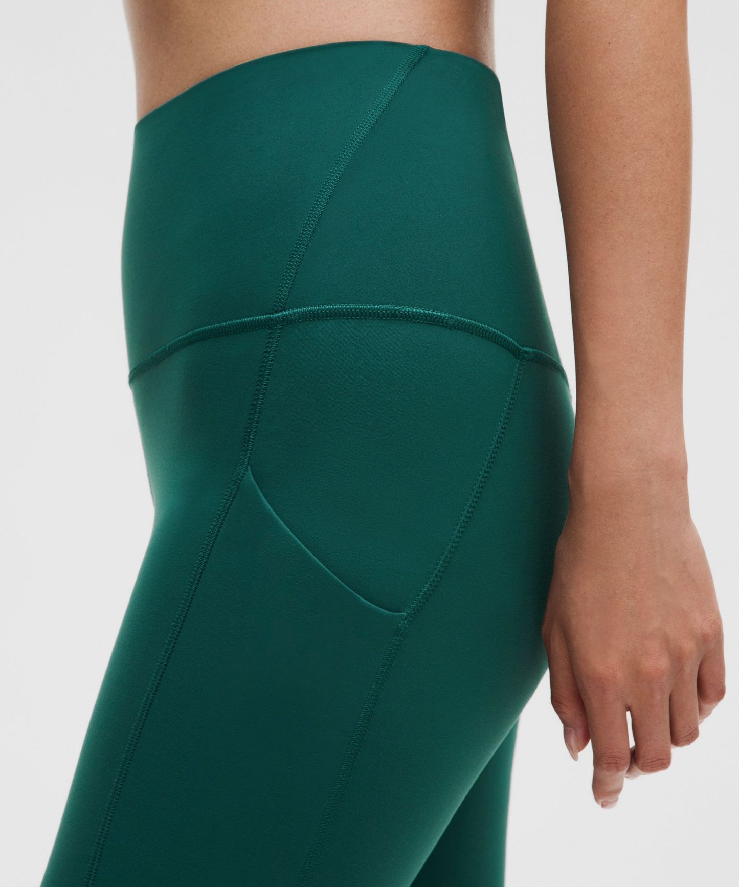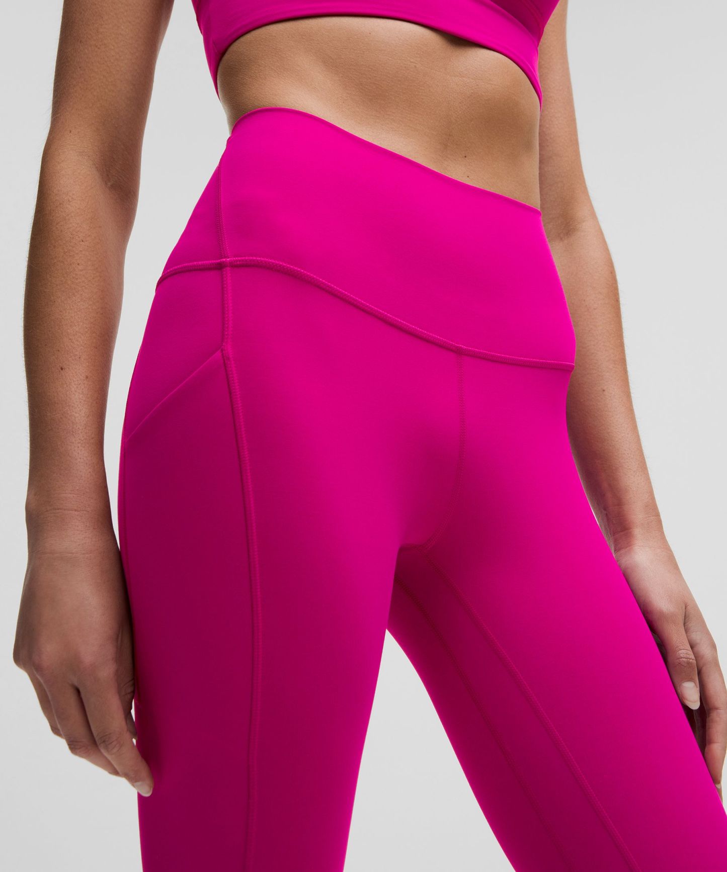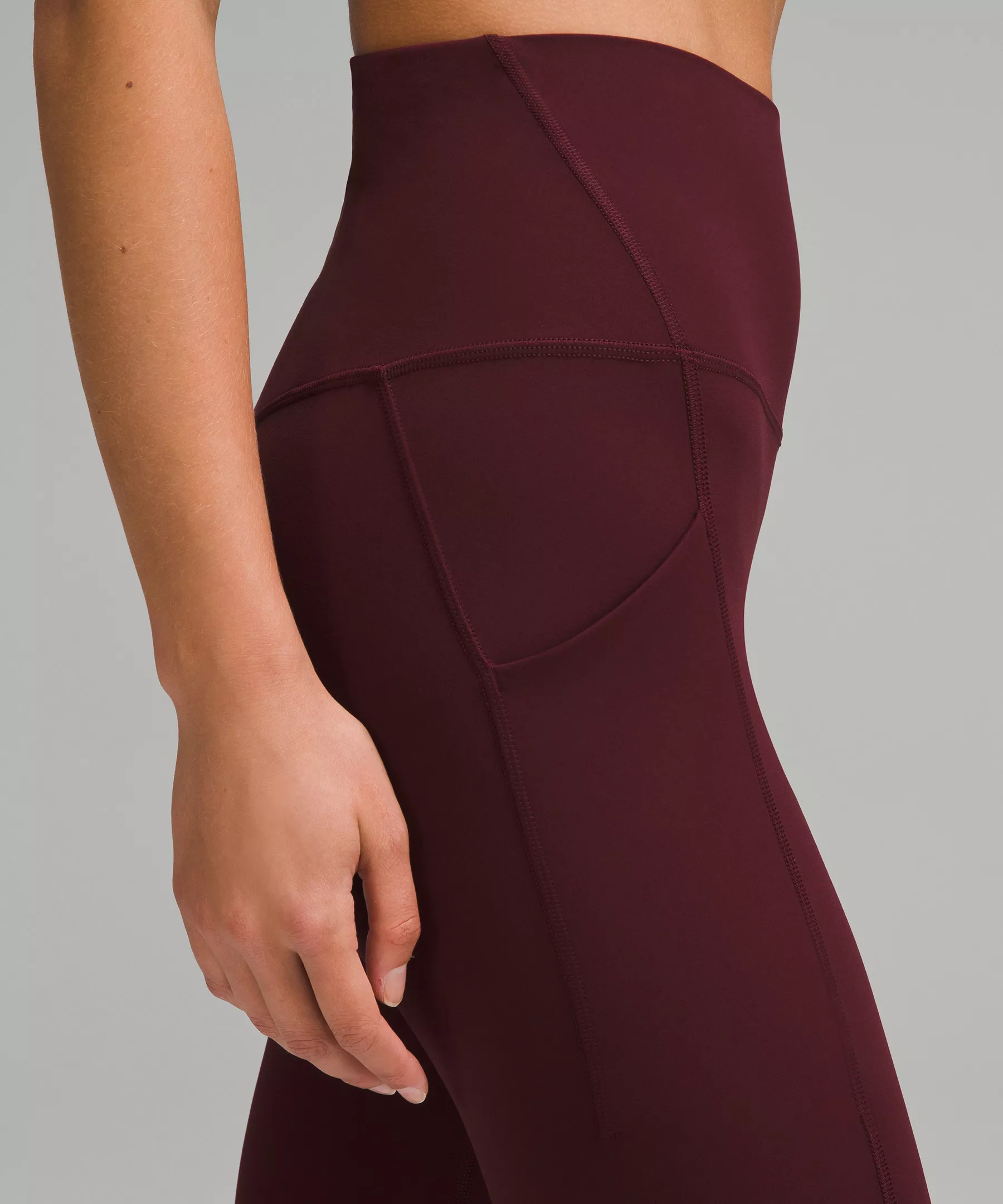 A high-rise waistband keeps you covered during forward folds and downward dogs. Our 25" length is intended to sit above your ankle.