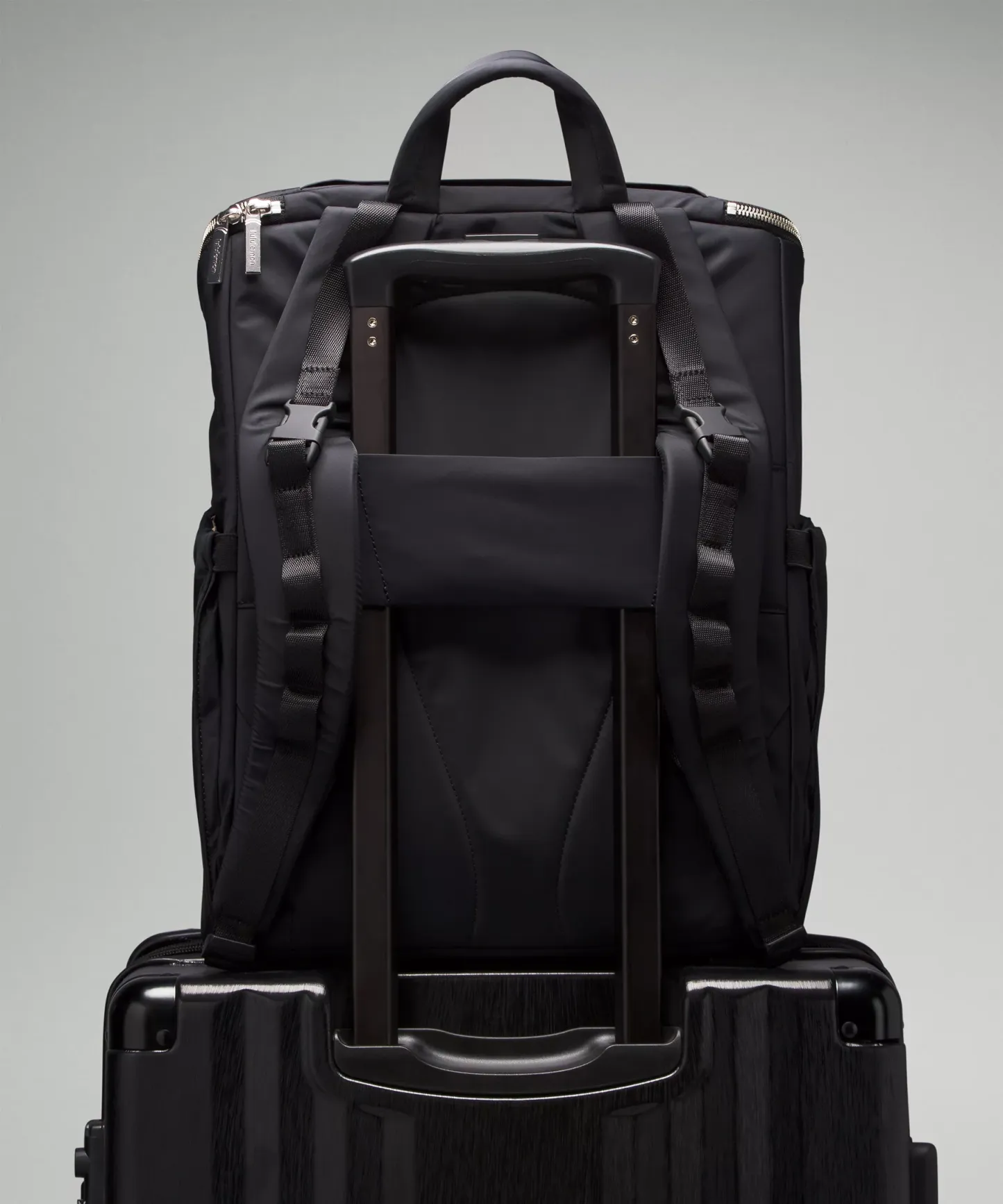 - Unclip backpack straps and clip bag onto stroller