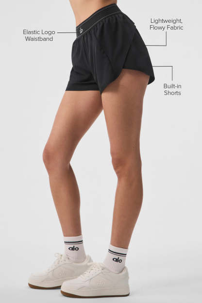 Take your look from the court to post-practice plans in the Match Point Tennis Skirt. It has a boxer-style elastic waistband (so on-trend), built-in shorts with a side pocket, and a mini-length hem. It’s made from a lightweight, slightly swishy performance fabric and has a cute, swingy fit. Wear it with a hoodie, a bra top, or even a blazer—this skirt aces the game every time.