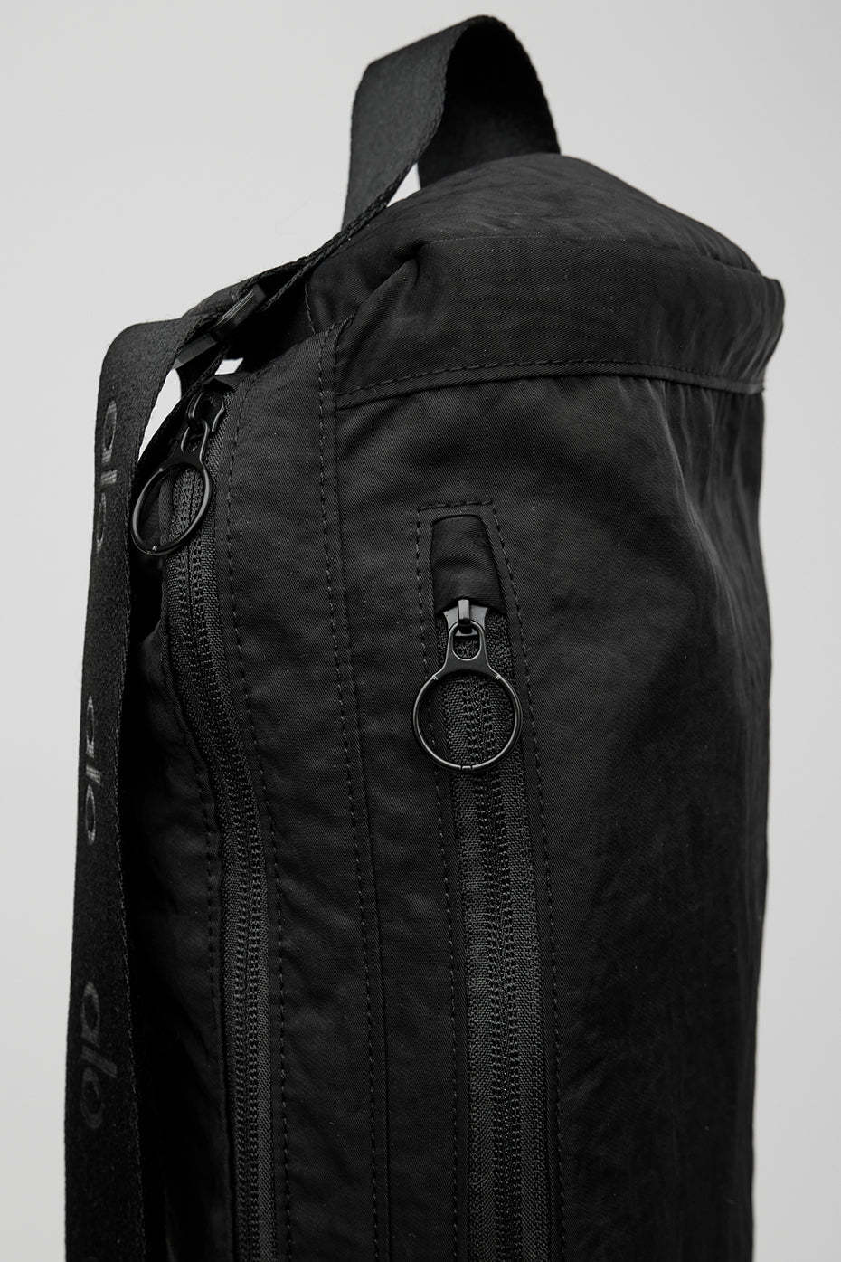 A yoga class necessity. The Yoga Mat Bag is studio-street smart with a soft, adjustable shoulder strap and a top handle for easy carrying. Easily attach your keys with the carabiner hook and store small essentials in exterior grab-and-go mesh storage pockets.