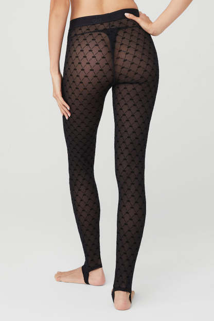 Ultra-shaping, sheer tights made from power mesh with 4-way stretch & ankle stirrups for supportive all-day wear. A wide, elastic logo waistband and all-over logo flocking creates a bold base layer to any look.