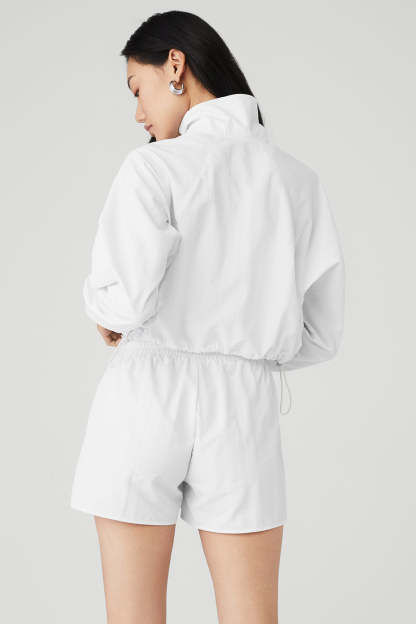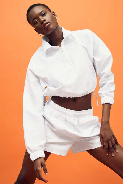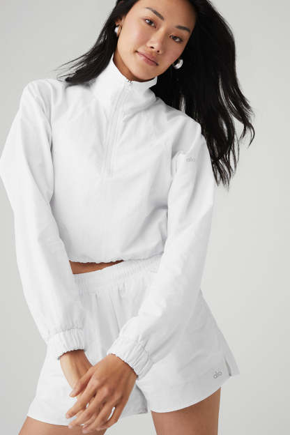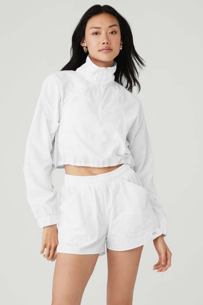 Upgrade your coverup collection with the Cropped ? Zip Alumni Pullover, cut from cool crinkle woven fabric that*s perfect for to-and-from yet easy enough to lounge in. Make it pop with leggings, biker shorts or a cute tennis skirt.