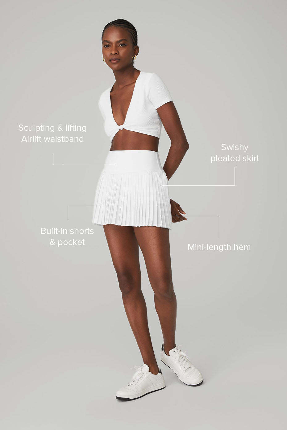 A fresh spin on the OG tennis skirt, the Grand Slam is designed with sharp pleats and a short, mini-length hem. Bonus points for the high-rise, holds-you-in-waistband (it's made from our signature Airlift fabric) and the built-in shorts (the pocket is perfect for stashing a tennis ball, keys, or card). Wear it with sweaters, bra tops, button-downs# You really can*t go wrong.