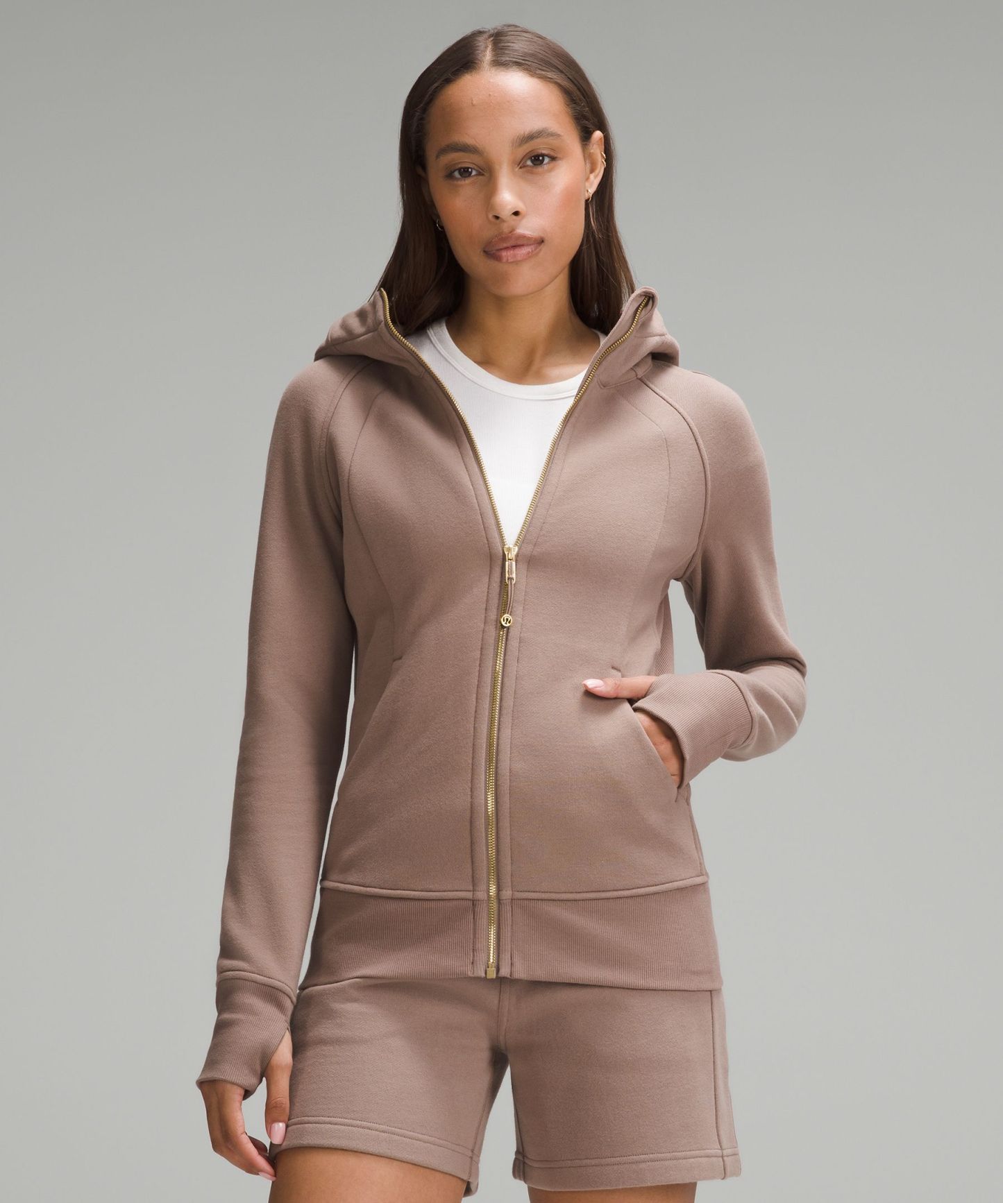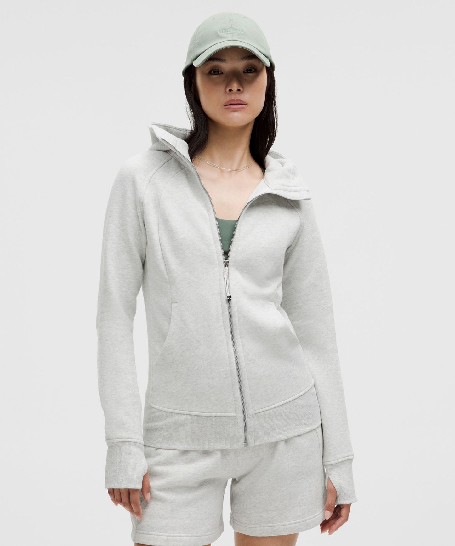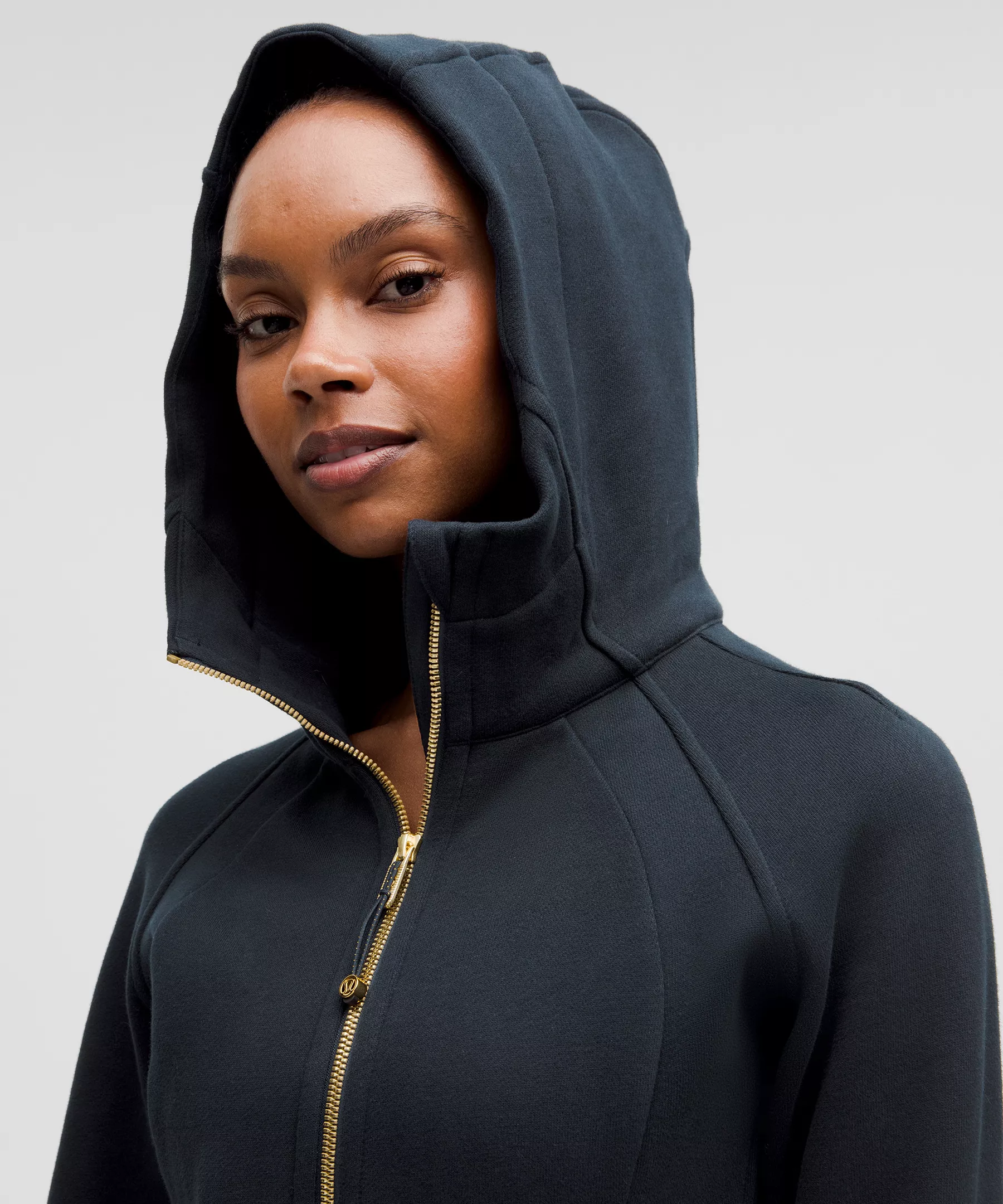 - Elastic zipper pull doubles as an emergency hair tie