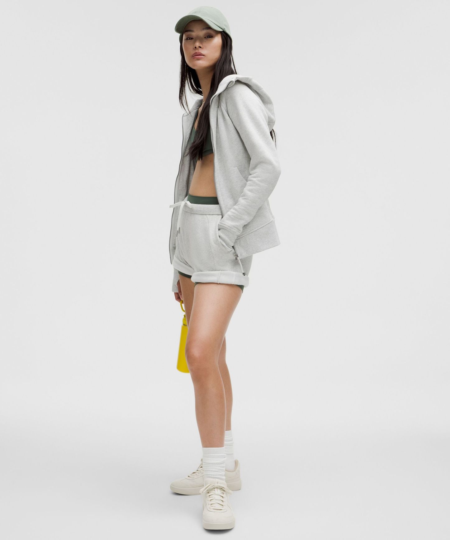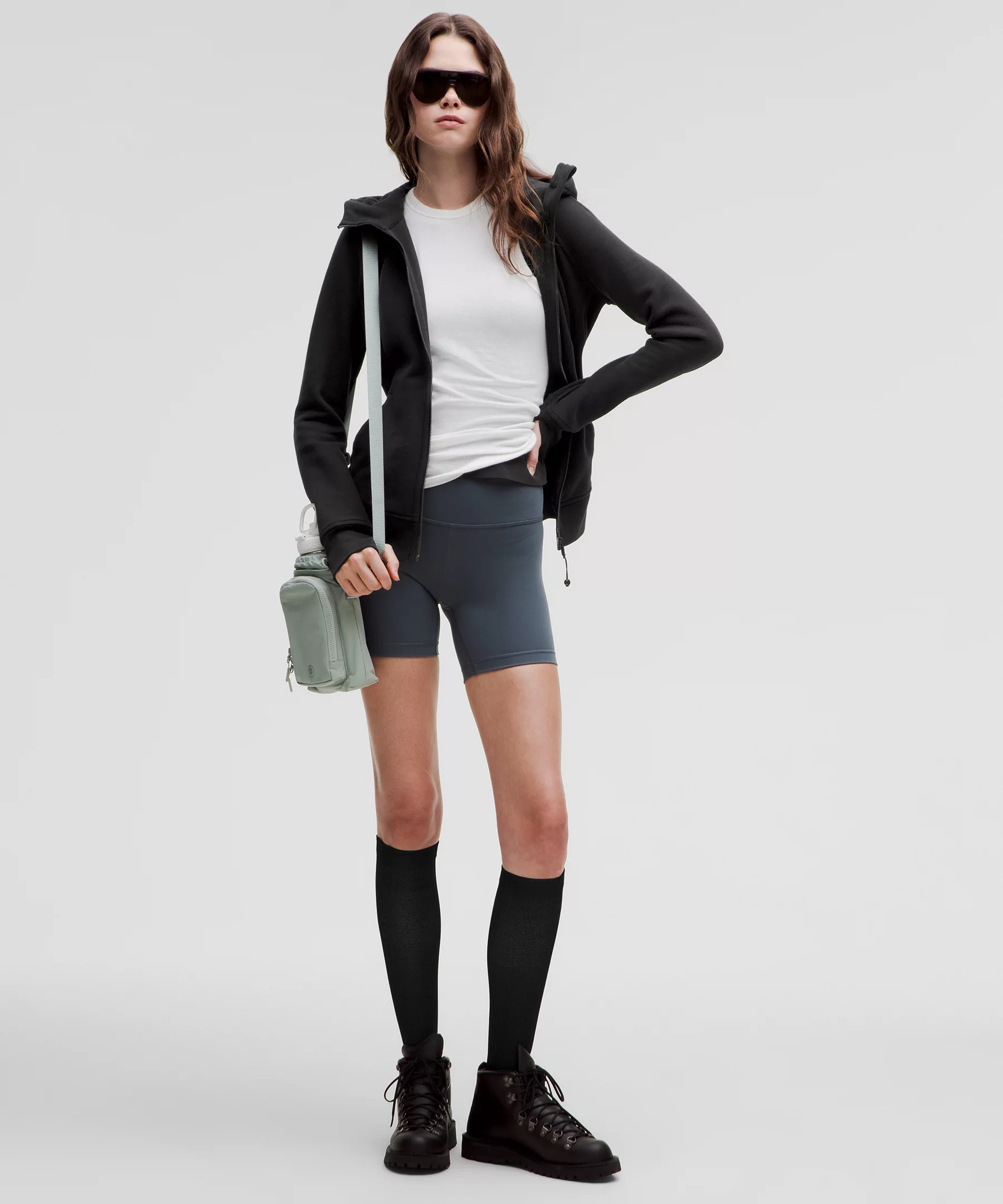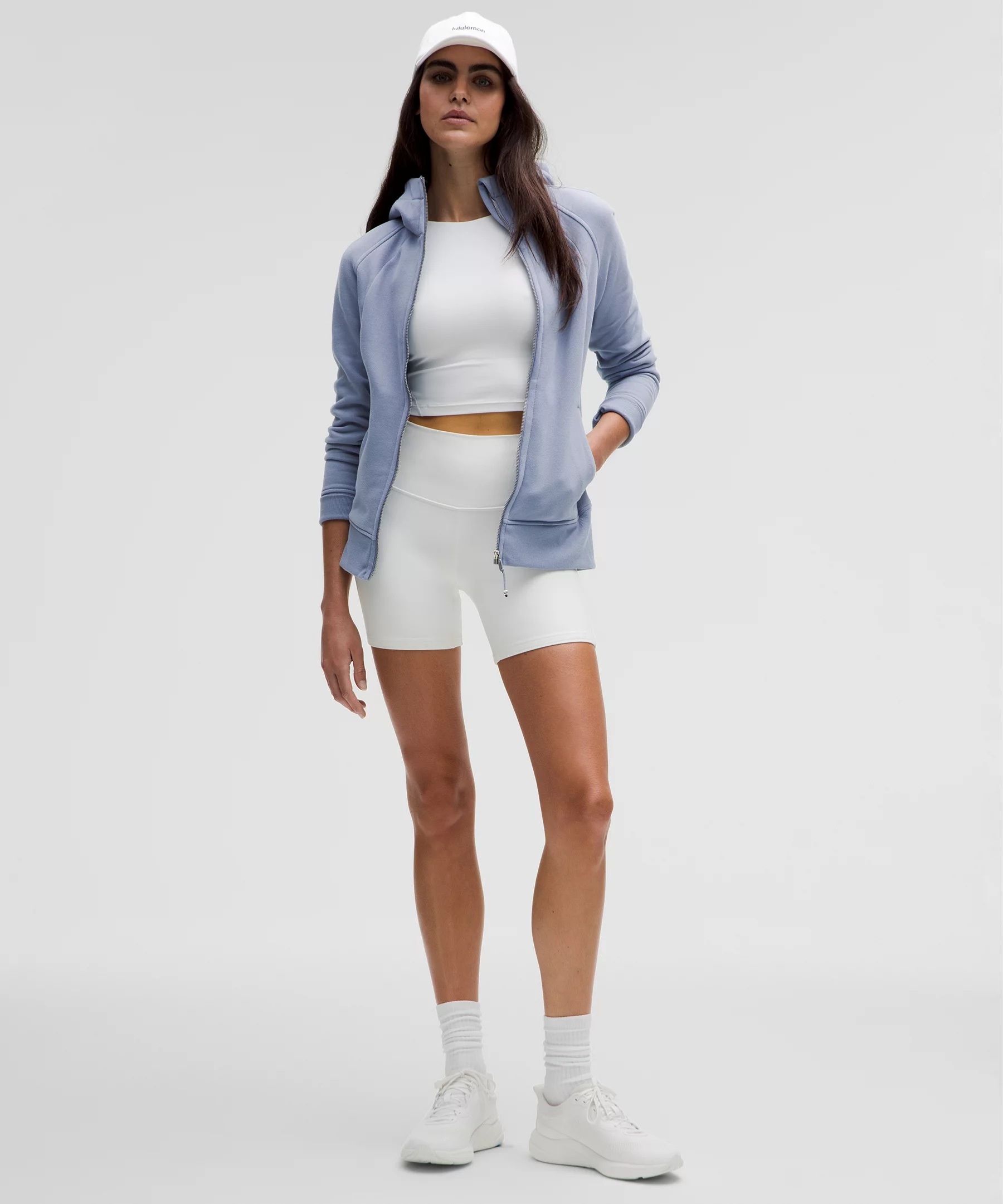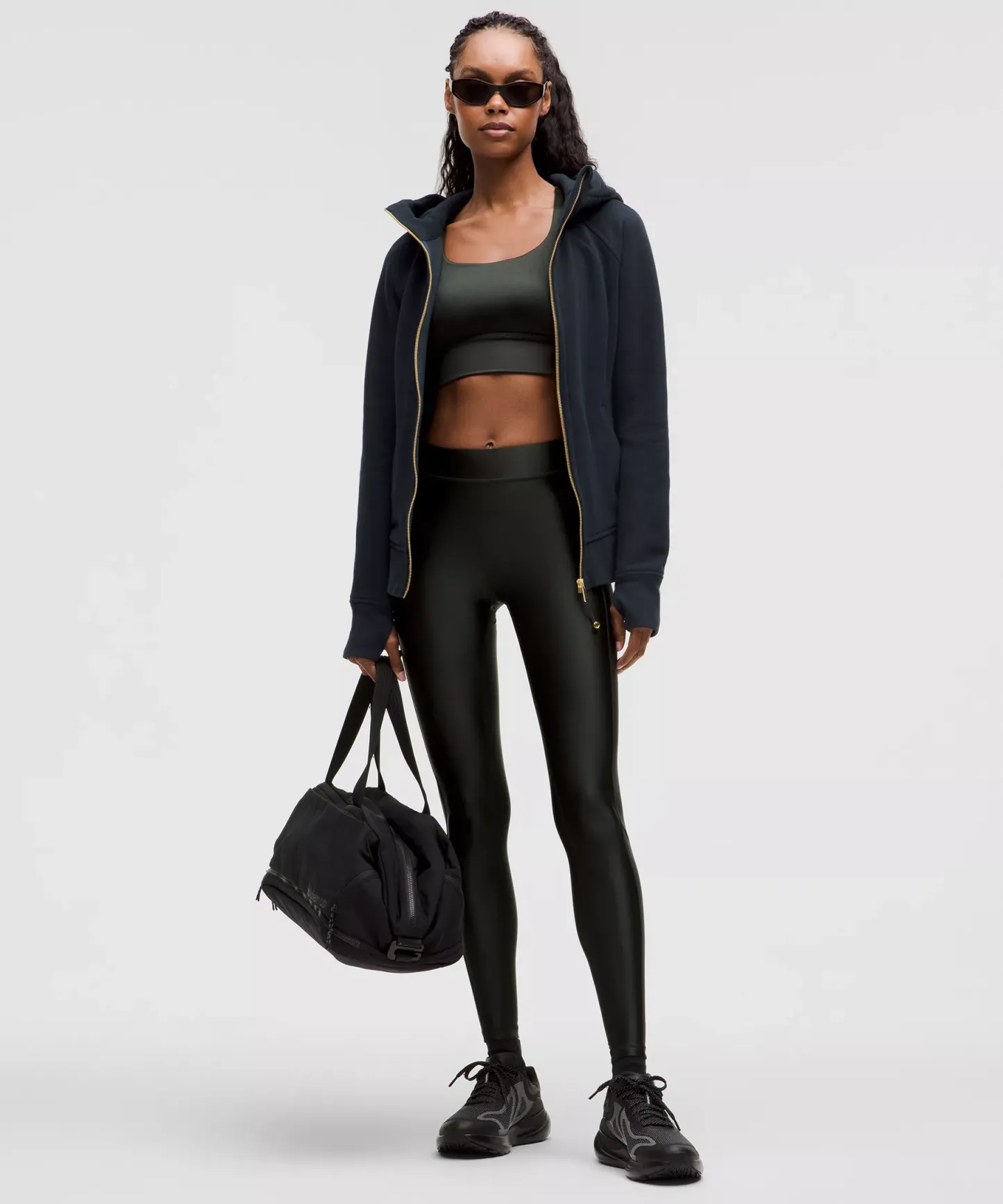 - Elastic zipper pull doubles as an emergency hair tie