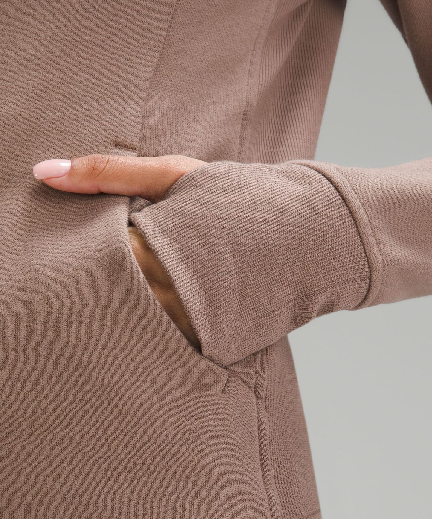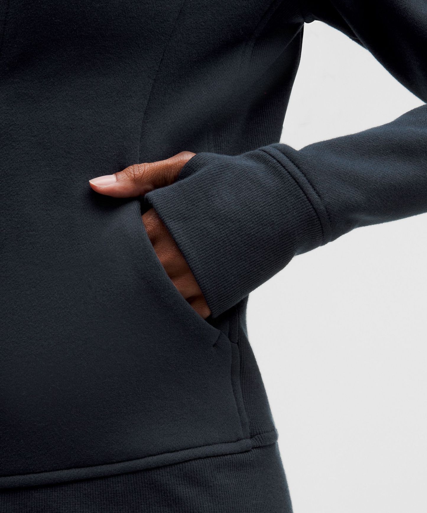 - Hand pockets with hidden phone sleeve