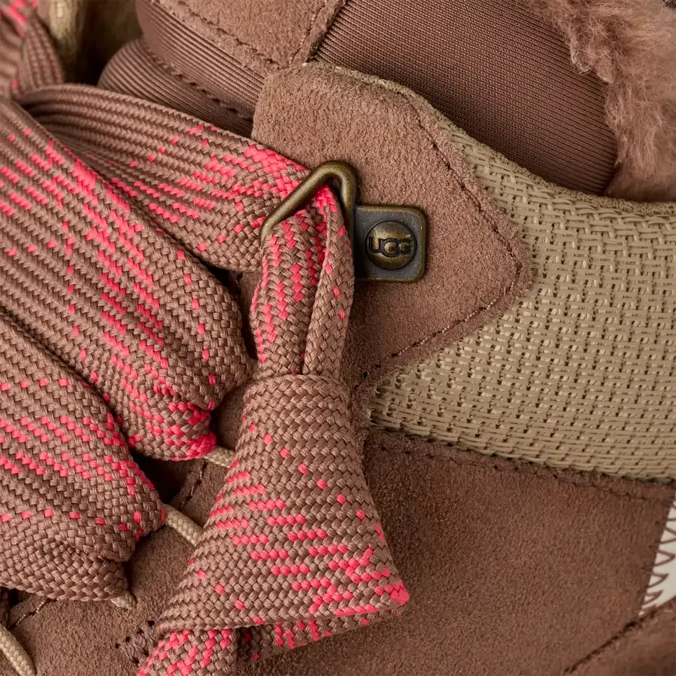 - Mesh en toile balistique recyclé, tige en daim, lanière au talon en nylon, écusson avec le logo UGG®, bracelet rembourré, languette matelassée oversize