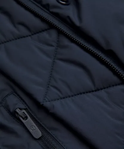 - Close-fitting interior cuffs help hold in heat
