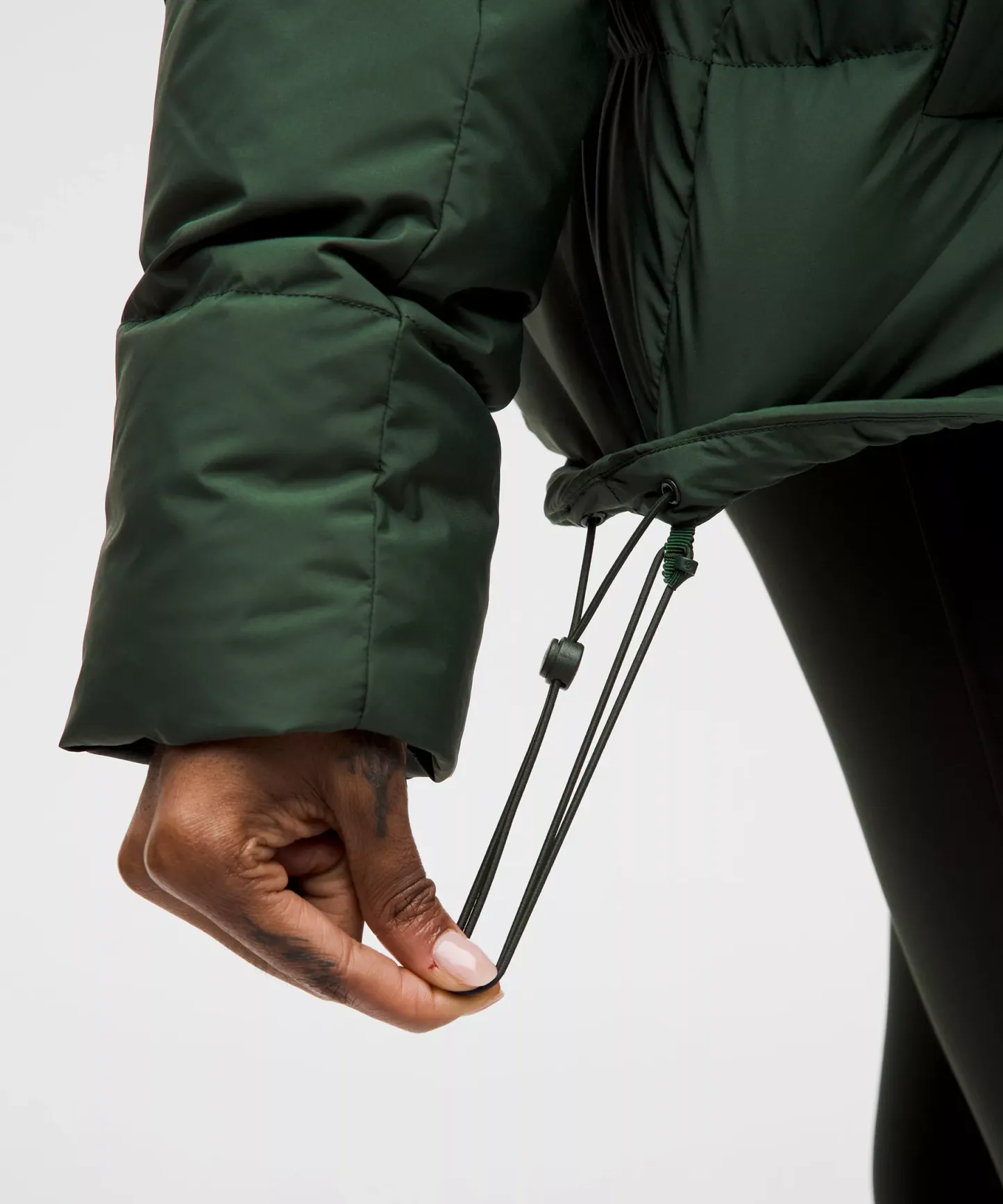 - Cinch the interior waist and hem drawcord to customize your fit