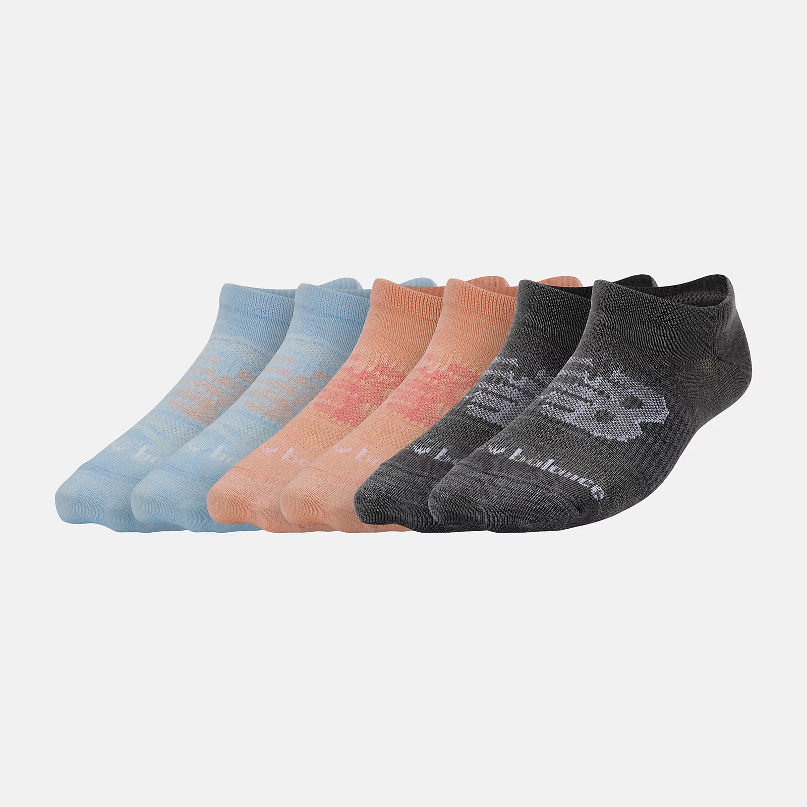 New Balance Kids' No-Show Socks take your child from the classroom to the playground in comfort. These children's socks feature a Y-shaped heel that help prevent the fabric from falling down bunching around the heel. Plus, reinforced heels and toes help the socks stand up to high-impact playtime. We also integratedmesh paneling and NB DRY technology to wick sweat from this poly knit fabric.